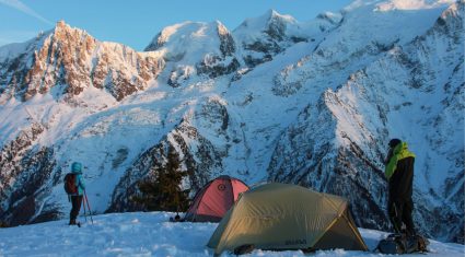 Notte in tenda a Chamonix: bivacco invernale sotto le stelle davanti al Monte Bianco