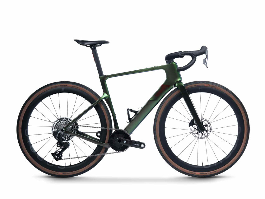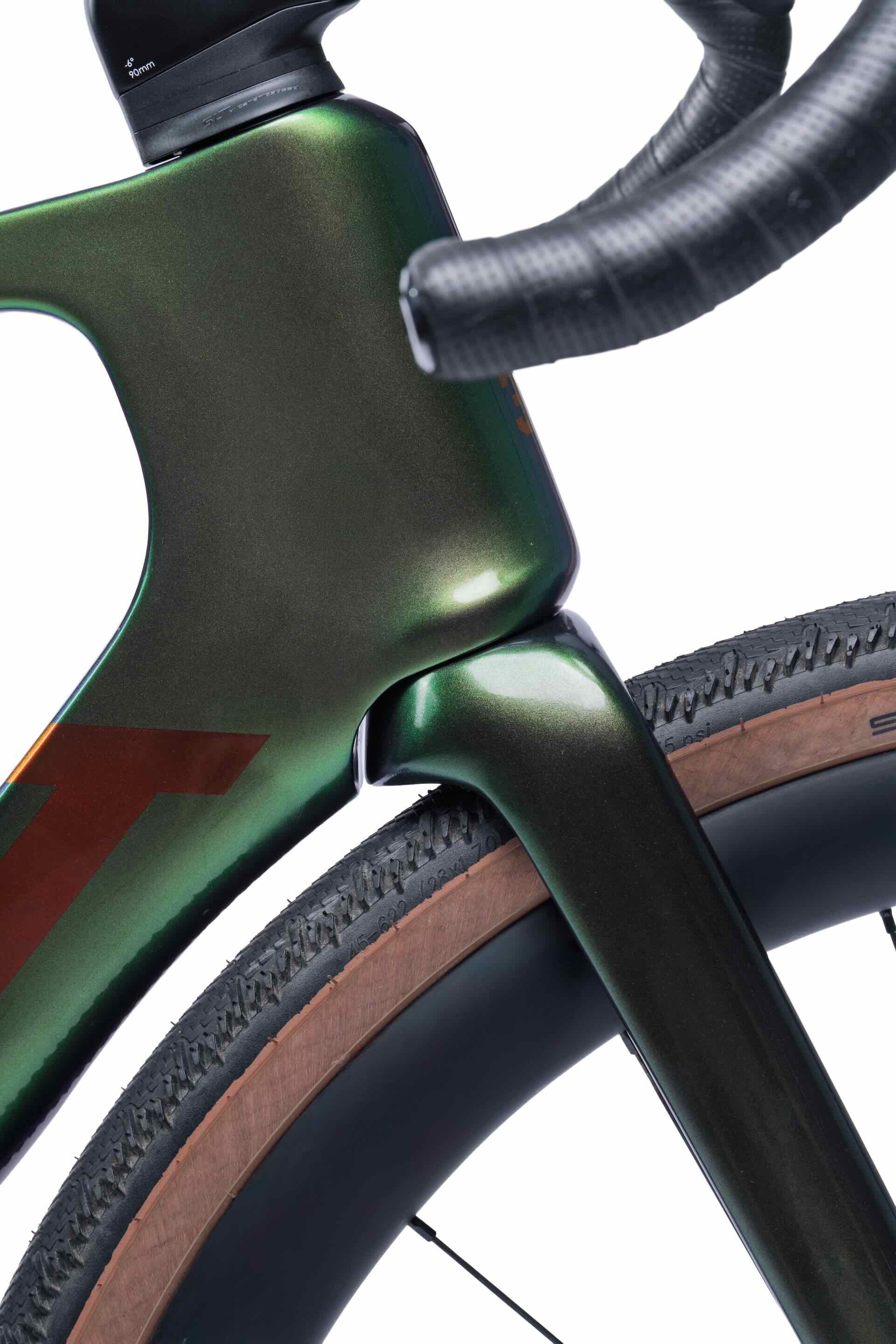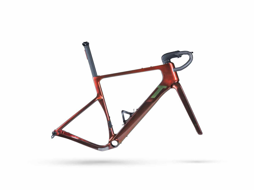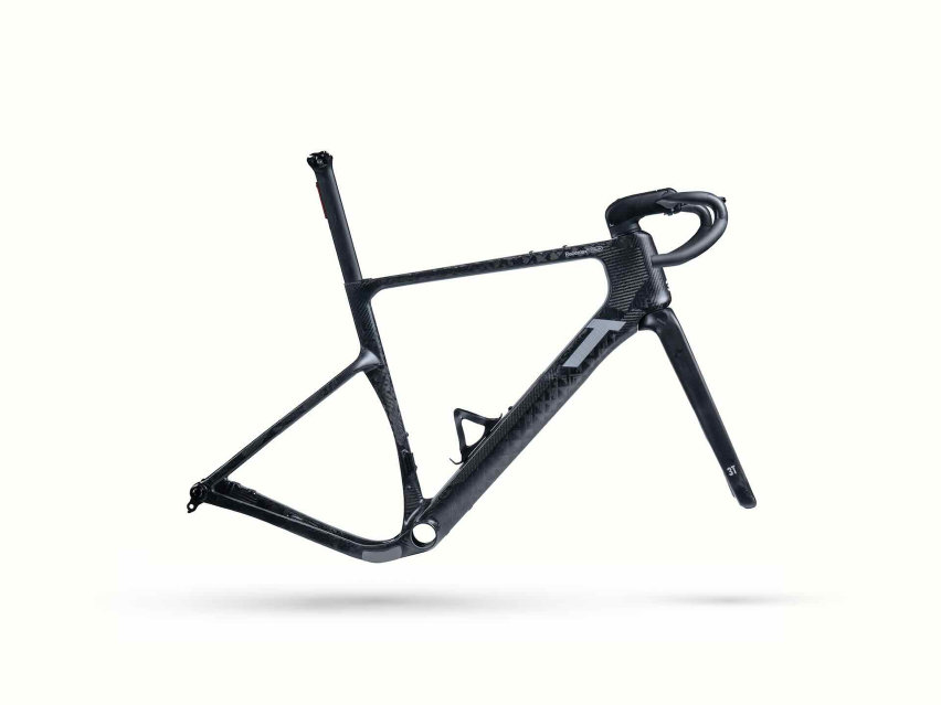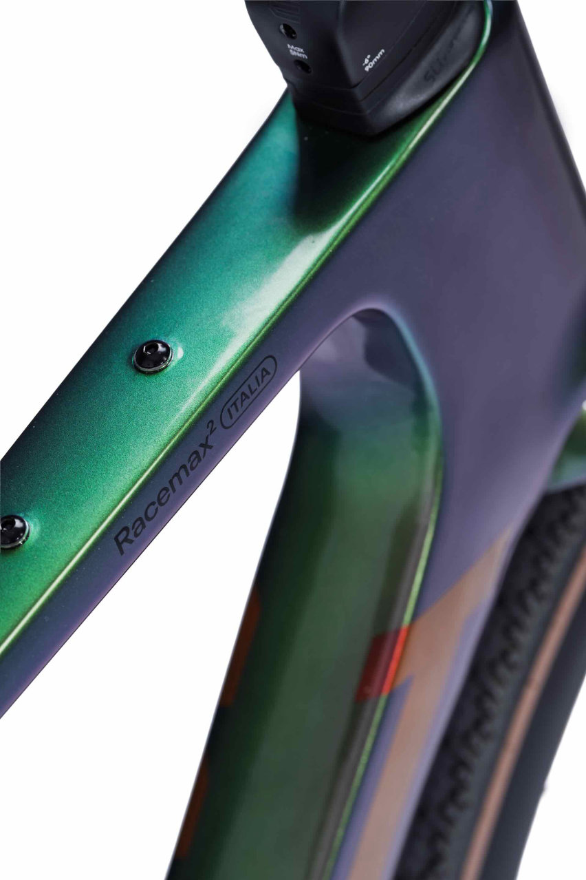 È la seconda generazione della famiglia Racemax, un design lanciato nel 2020 su un telaio di produzione asiatica e, dal 2021, realizzato anche in Italia grazie alla tecnologia proprietaria di lavorazione del carbonio di 3T, basata su Filament Winding e Resin Transfer Molding (ribatezzatta oggi Jazz Carbon). Alla serie di migliorie progressivamente introdotte negli anni, come l’integrazione dei cavi e la compatibilità UDH, segue oggi un progetto ispirato alla prima generazione, ma completamente rivisto: non un solo centimetro è uguale alla precedente Racemax Italia.