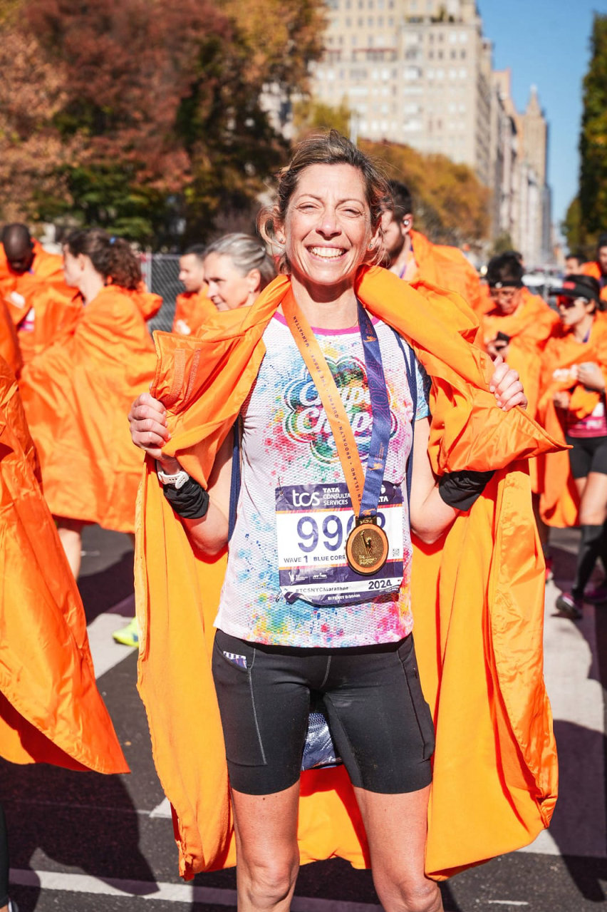 “Ho iniziato a preparare NY in primavera, appena fattibile. Era il mio sogno e l’ho presa con molta dedizione e un piano d’allenamento specifico. Prediligo le gare lunghe, dopo i 20 km entro in un mondo mio, privo di fatica mentale, ma non pratico trail running, solo corsa su strada e sci di fondo in inverno, due volte a settimana, oltre alla palestra. NY è stato il mio obiettivo per motivarmi dopo la morte della mia mamma. Avevo grandi aspettative e un carico emotivo altissimo, oltre a un obiettivo cronometrico di 3h05’-3h08’, un tempo preciso di 3h08’. La mia era l’emozione di una bambina che apre il regalo sperato. Sono caduta al 14esimo km, purtroppo, e da lì è stato un calvario perché la caviglia aveva seri problemi; ho terminato grazie al supporto del mio compagno che per me rimarrà sempre il ricordo migliore di questa maratona.”