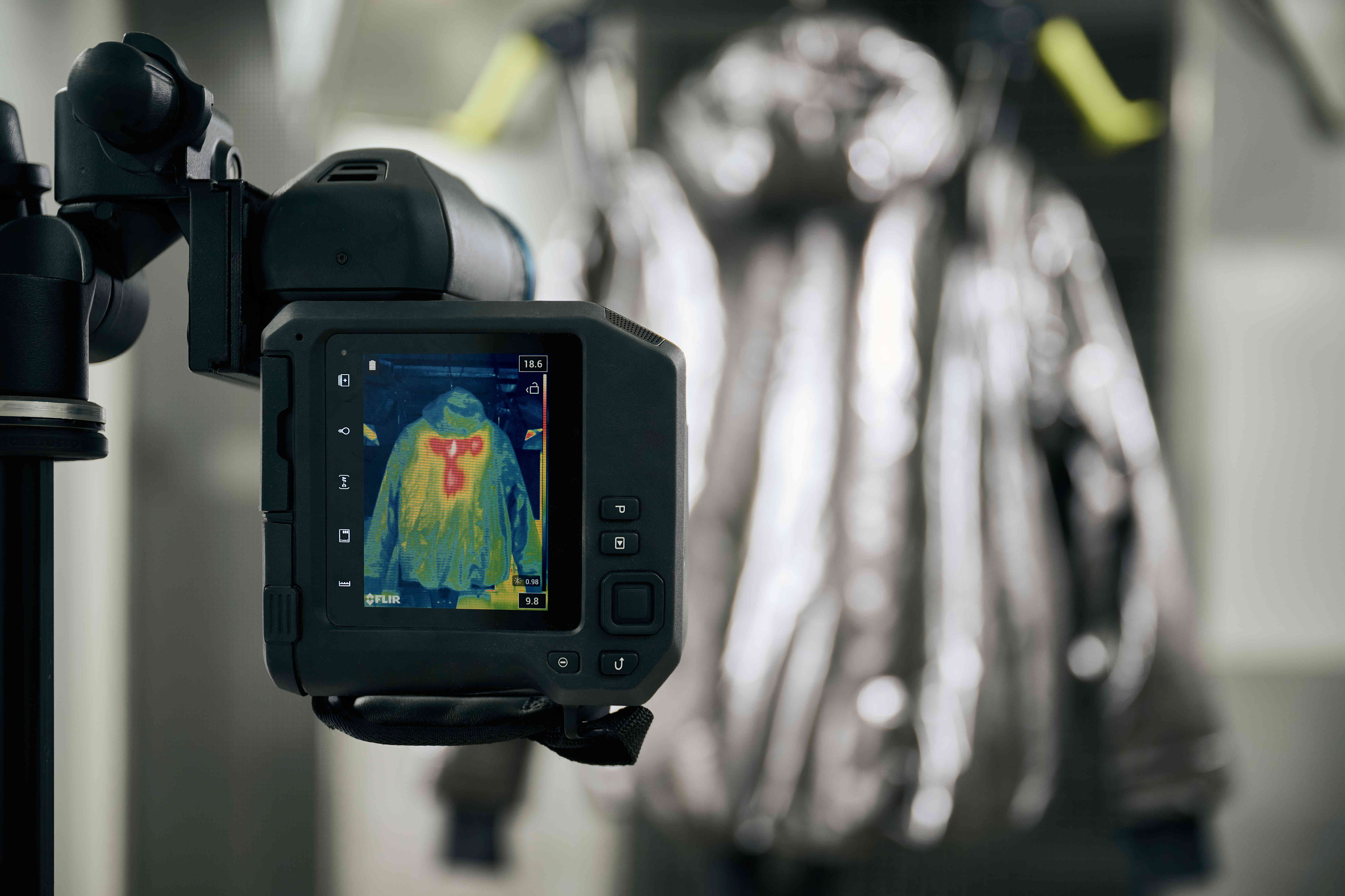 La tecnologia termica intelligente è sviluppata da Clim8®, azienda francese leader nei sistemi autonomi di regolazione termica per l’abbigliamento tecnico. I loro sensori monitorano la temperatura corporea in tempo reale, garantendo comfort e prestazioni ottimali.