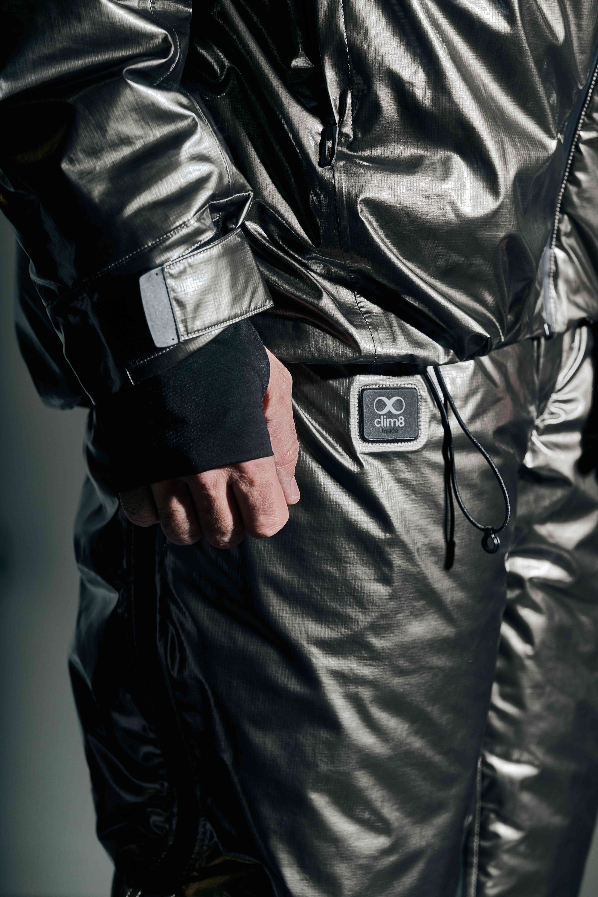 Il sistema è composto da giacca e pantaloni pre‑gara con cuscinetti riscaldanti Clim8® integrati, ultrasottili e posizionati sui principali gruppi muscolari. L’obiettivo è mantenere la temperatura ideale fino al momento in cui si inizia a correre.
