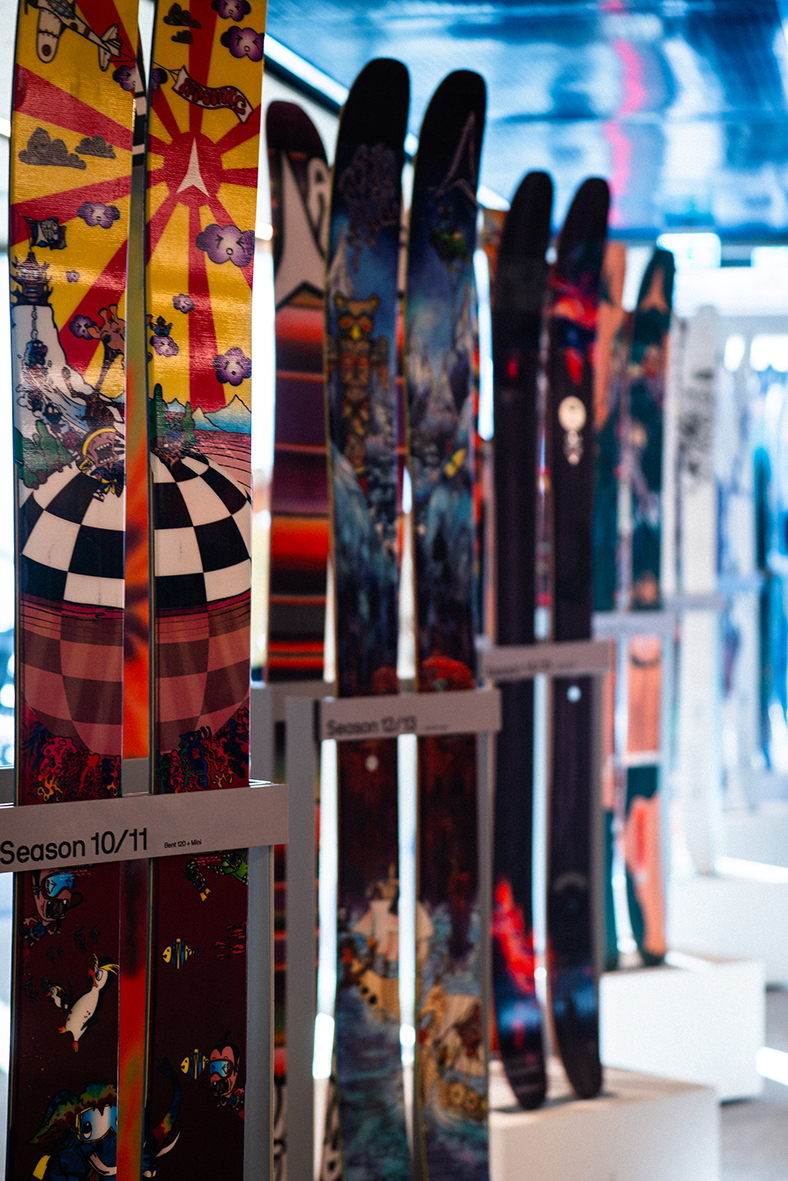 Nel tardo pomeriggio, l’evento si è spostato all’Headquarter Mottolino di Livigno, trasformandosi in un momento più intimo e ispirazionale. I partecipanti hanno avuto accesso al Bent Museum, spazio unico che raccoglie le 18 edizioni degli sci firmati da Chris Benchetler.
