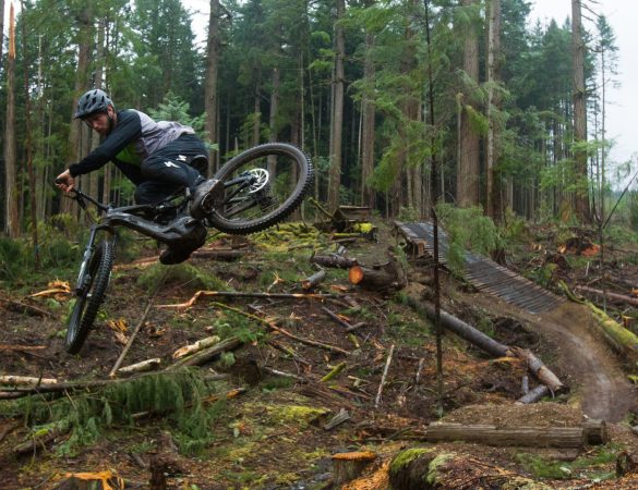 …sì, perché c’è un ma. Perché su velocissimi trail pieni zeppi di salti doppi e tripli, e sponde enormi, i due rider protagonisti non stanno usando la loro solita bici. Guardate con attenzione, e vi renderete conto che sono in sella a eMTB – bici a pedalata assistita, qui Specialized Turbo Levo FSR – di…