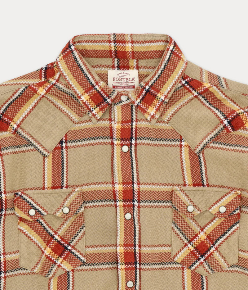 Ispirata alle camicie iconiche del West americano, la camicia Josh di Fortela richiama lo spirito della tradizionale camiceria texana, reinterpretato con la sensibilità contemporanea del brand.
