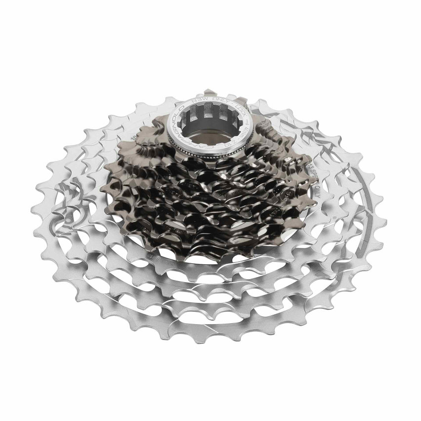 Disponibile nelle versioni 10-33 (215 g) e 11-36 (238 g), garantisce una riduzione di peso fino a 44 grammi. Le grafiche laserate e la finitura black chrome/titanio naturale ne fanno un elemento estetico distintivo, in perfetto stile Campagnolo.
