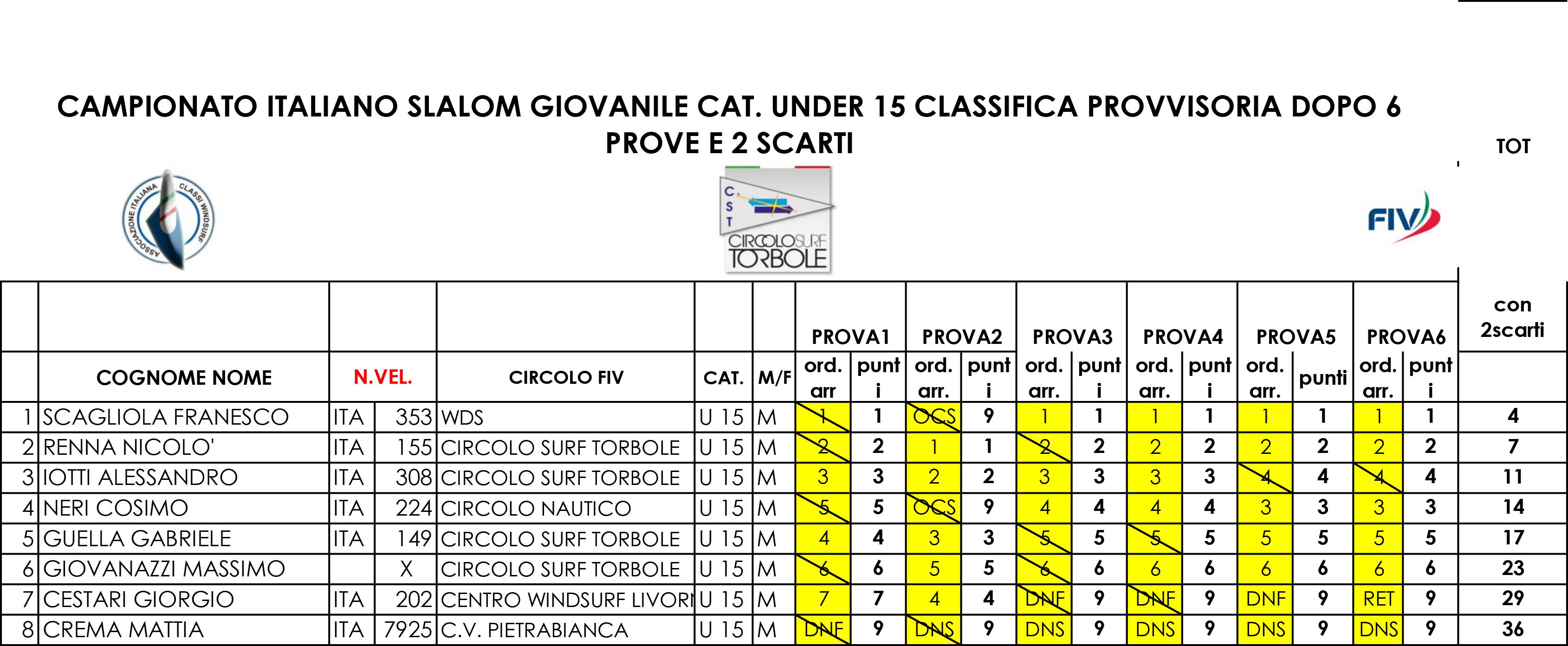 Spettacolare giornata con sole e vento molto forte (soprattutto a Torbole) con punte di vento sui 20-22 nodi. Sono state svolte 6 prove per ciascuna categoria (U15, U17 e U20), per un totale di 18 batterie. La categoria che ha dato maggiore spettacolo è stata quella dei più piccoli, la Under 15 con Francesco Scagliola che si aggiudica tutte le heat seguito da Nicolò Renna e Alessandro Iotti. Tutti i ragazzi hanno gareggiato con il RRD Fire Race W-Tech 120 Club – One Design e vele dalla 5.7 alla 6.4.