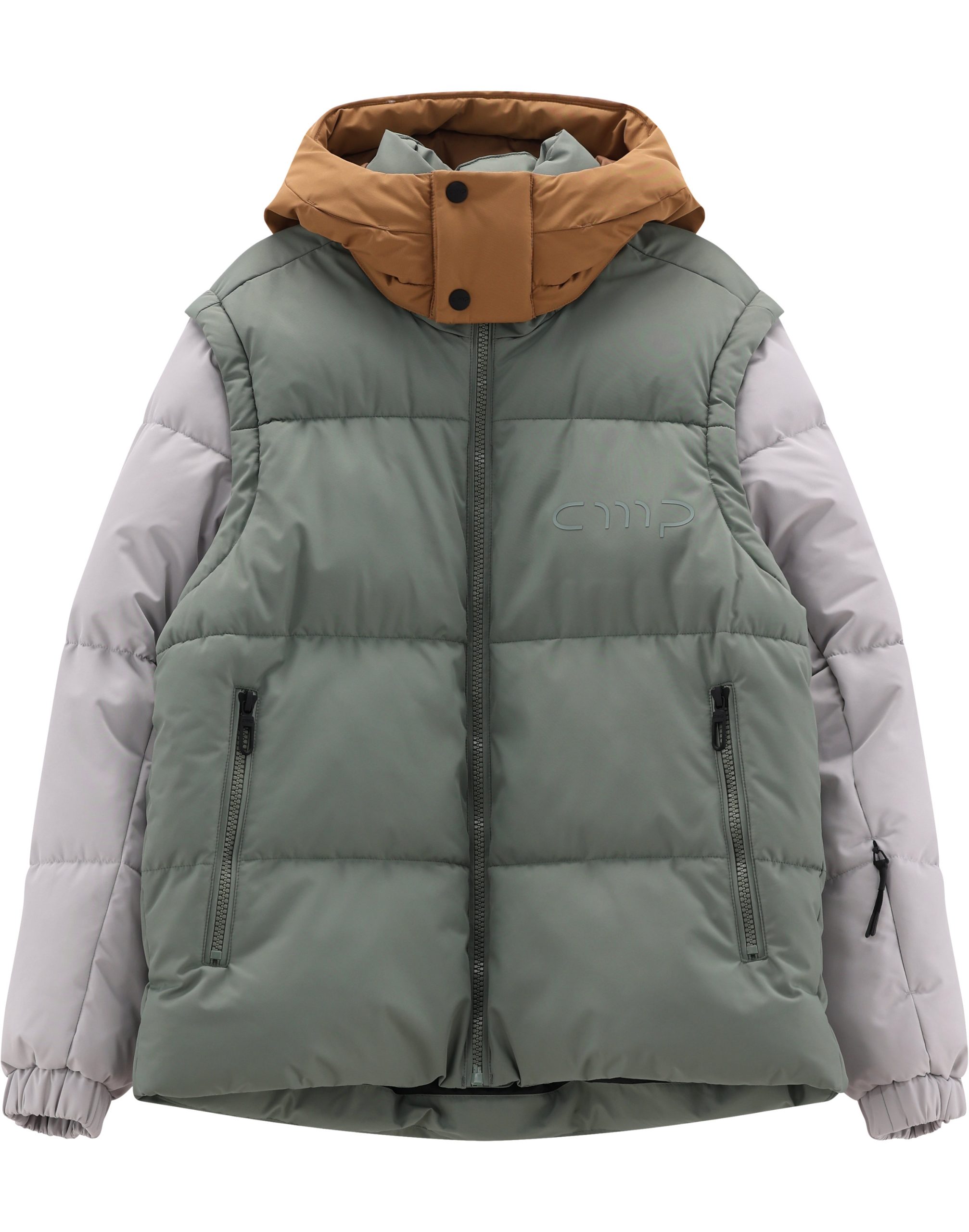Giacca modulare con maniche staccabili e design contemporaneo.