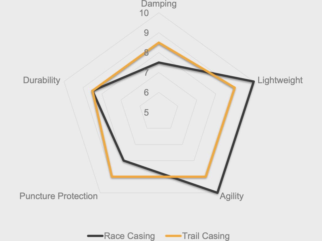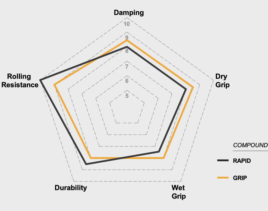 Il Terra Competition è disponibile in due costruzioni distinte: con carcassa Race e mescola Rapid: orientata alla massima velocità, accelerazione e rendimento su percorsi veloci e scorrevoli. Con carcassa Trail e mescola Grip: più robusta, con struttura rinforzata per un utilizzo offroad più impegnativo e una maggiore protezione dalle forature.