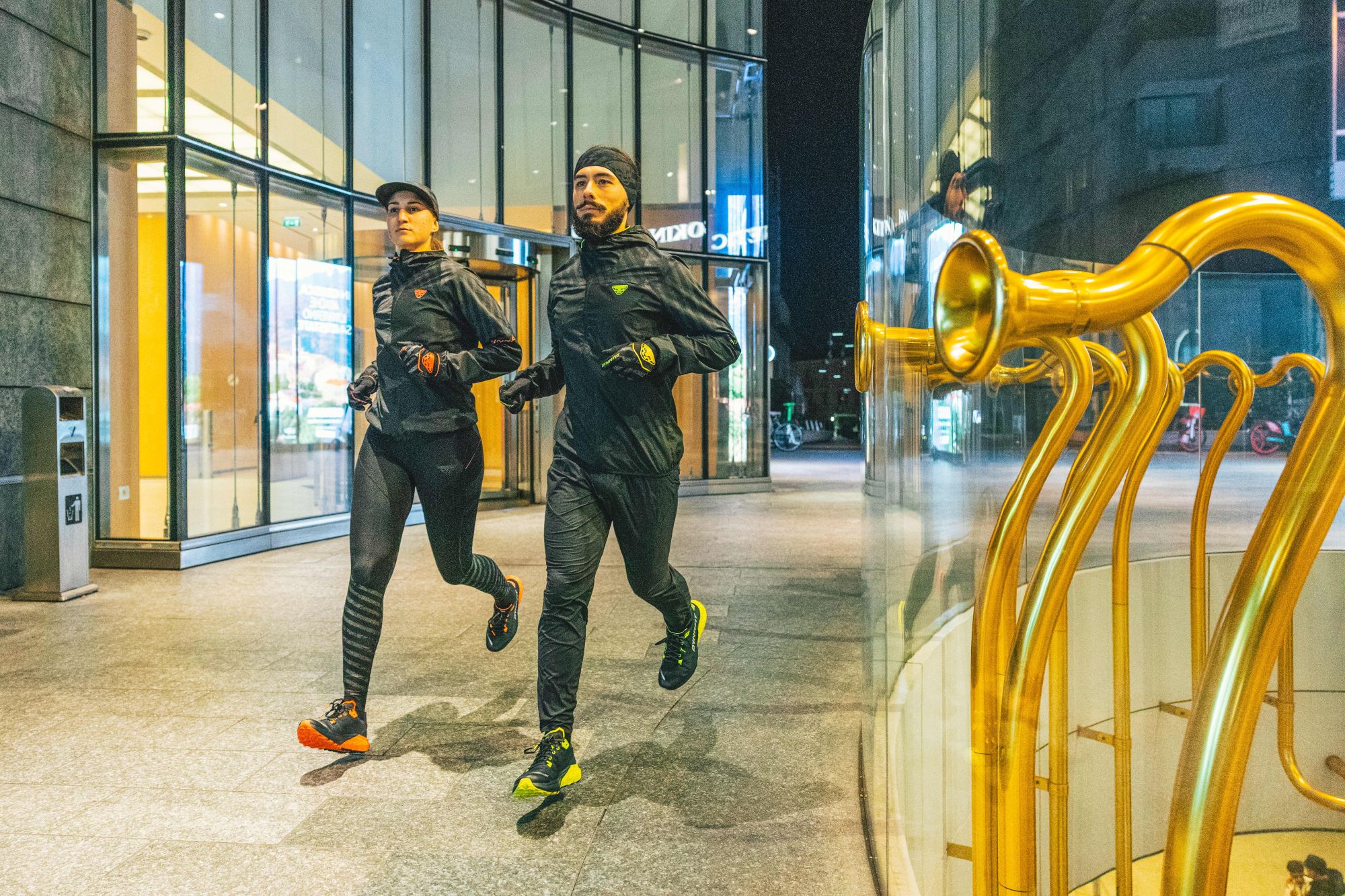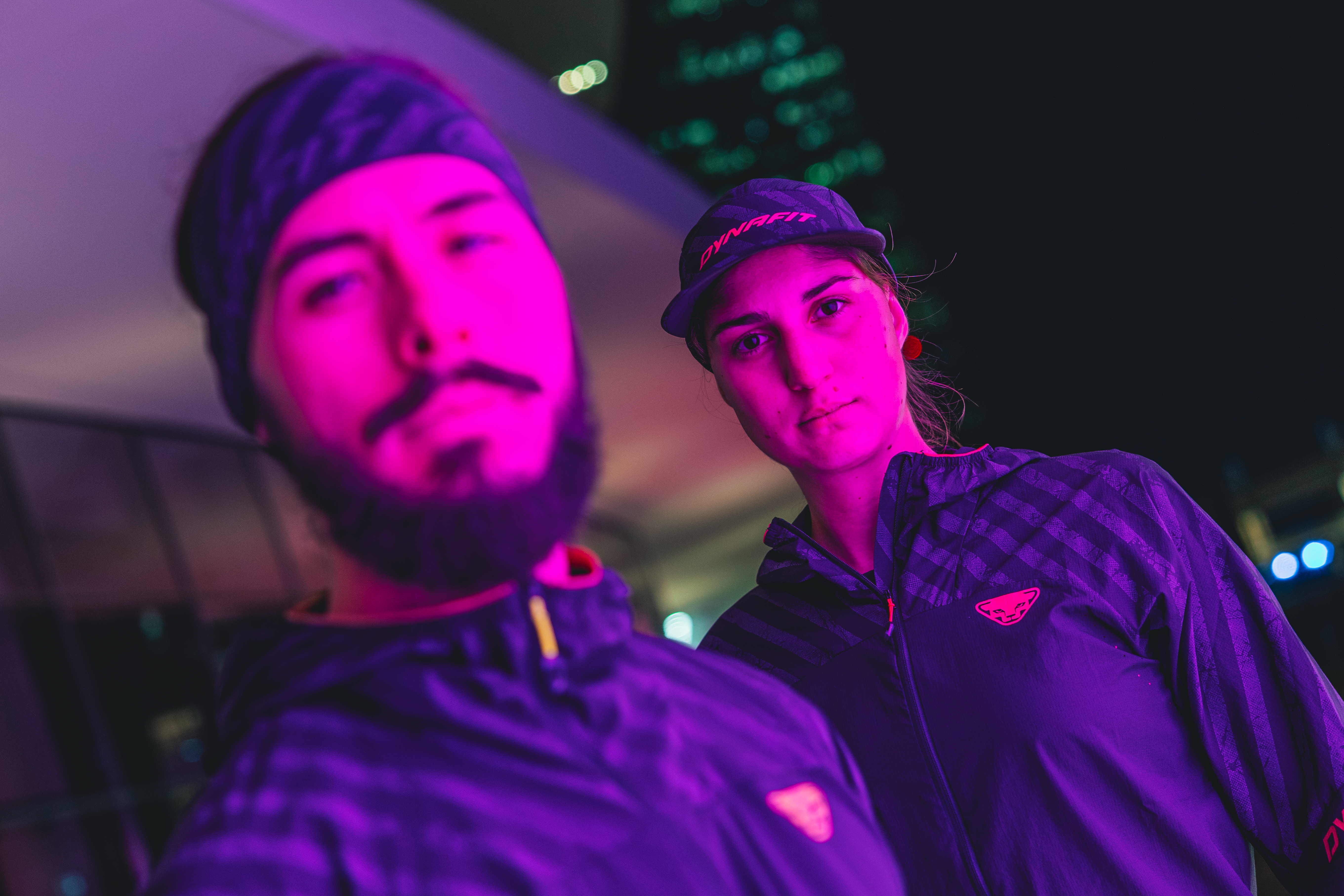 “La notte di Milano diventa il nostro palcoscenico. Ogni scatto racconta la libertà di correre quando la città si illumina e i riflessi dei capi Dynafit Reflective emergono come segni di energia e protezione.”