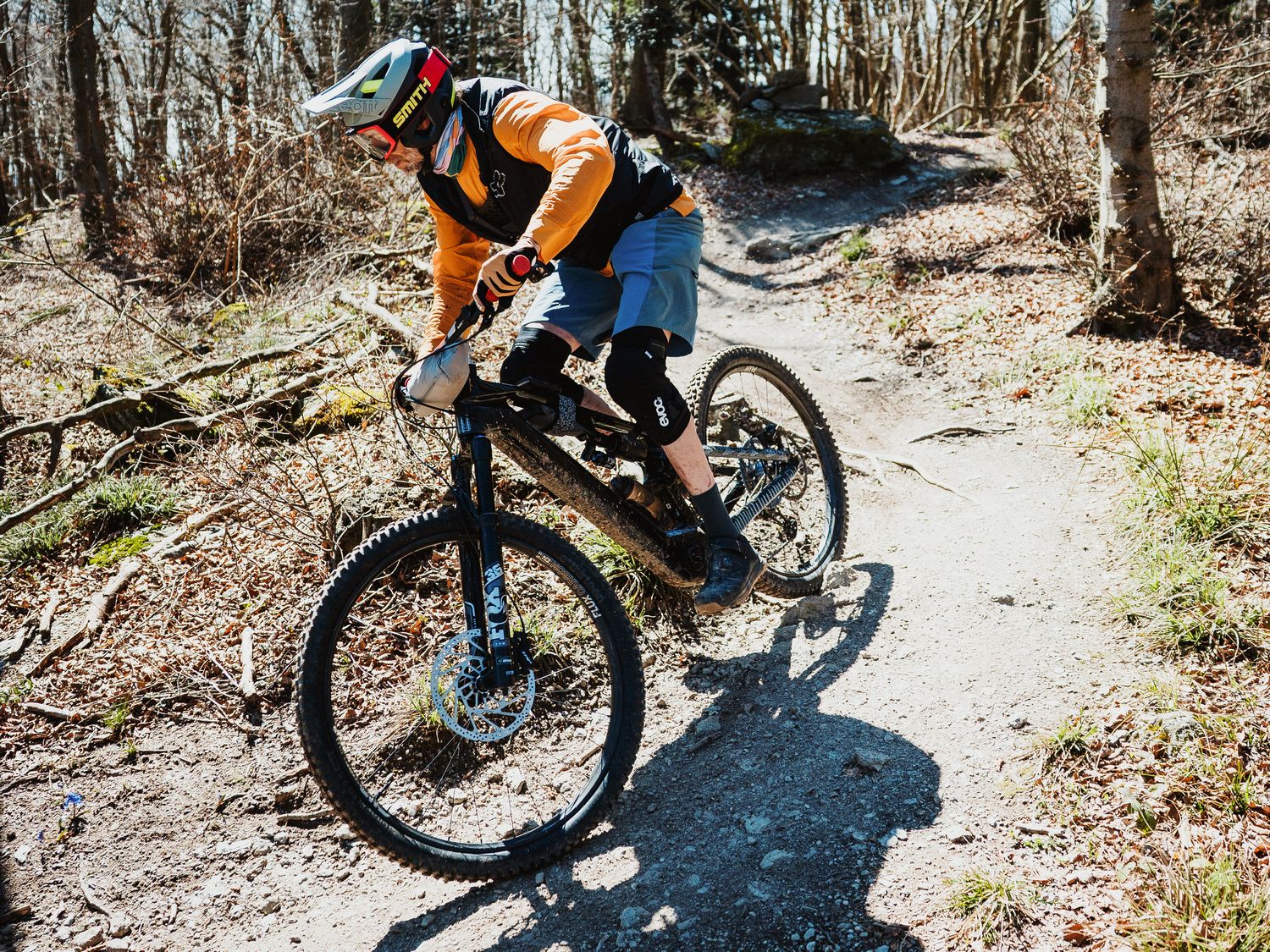 La sessione di prova è iniziata con una discesa, con le ruote di serie, sul noto trail Legnaia della cosiddetta Ivolandia, quell’area di Orco Feglino gestita dal mitico trail builder Ivo Camilli. I tecnici e13 hanno poi montato il set Grappler Sidekick Flux Carbon Enduro – completo di gomme Grappler –, per verificare le differenze nel feeling alla guida e nelle performance.