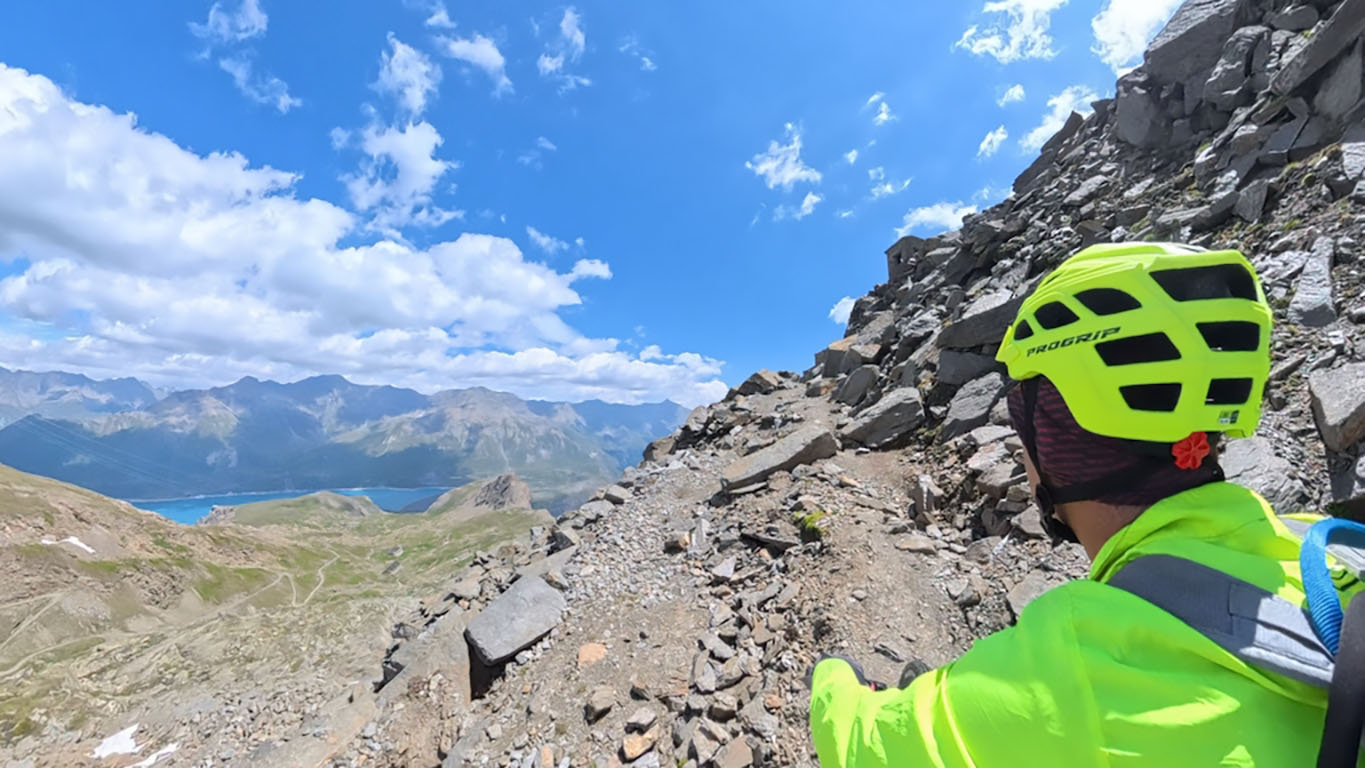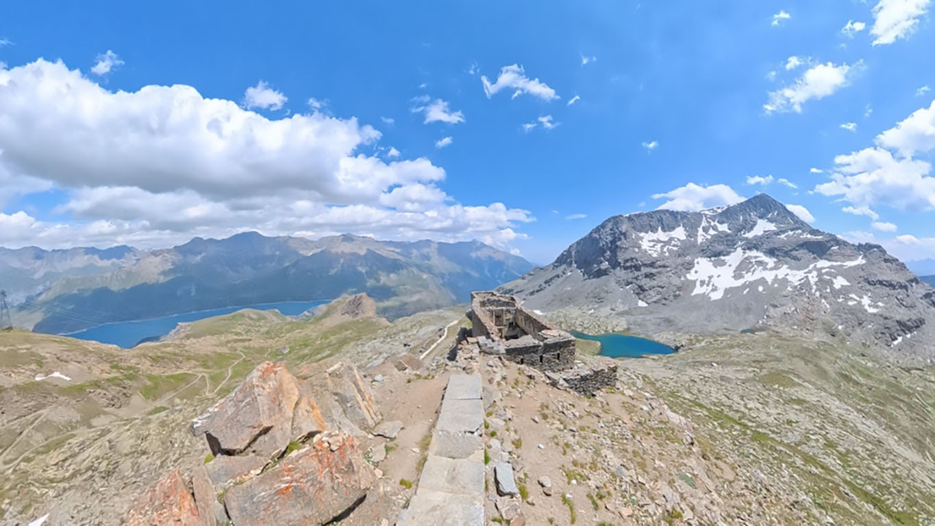 Casco, guanti Progrip e via: ci arrampichiamo lungo la diga del Moncenisio. Sul versante sinistro del lago seguiamo le indicazioni verso il forte. Dopo una lunga salita la strada si spiana e ci troviamo davanti a un bivio: a sinistra si raggiunge il Lago Bianco a 2.600 m, a destra la Fortezza del Malamot a 2.914 metri. Noi scegliamo quest’ultima.