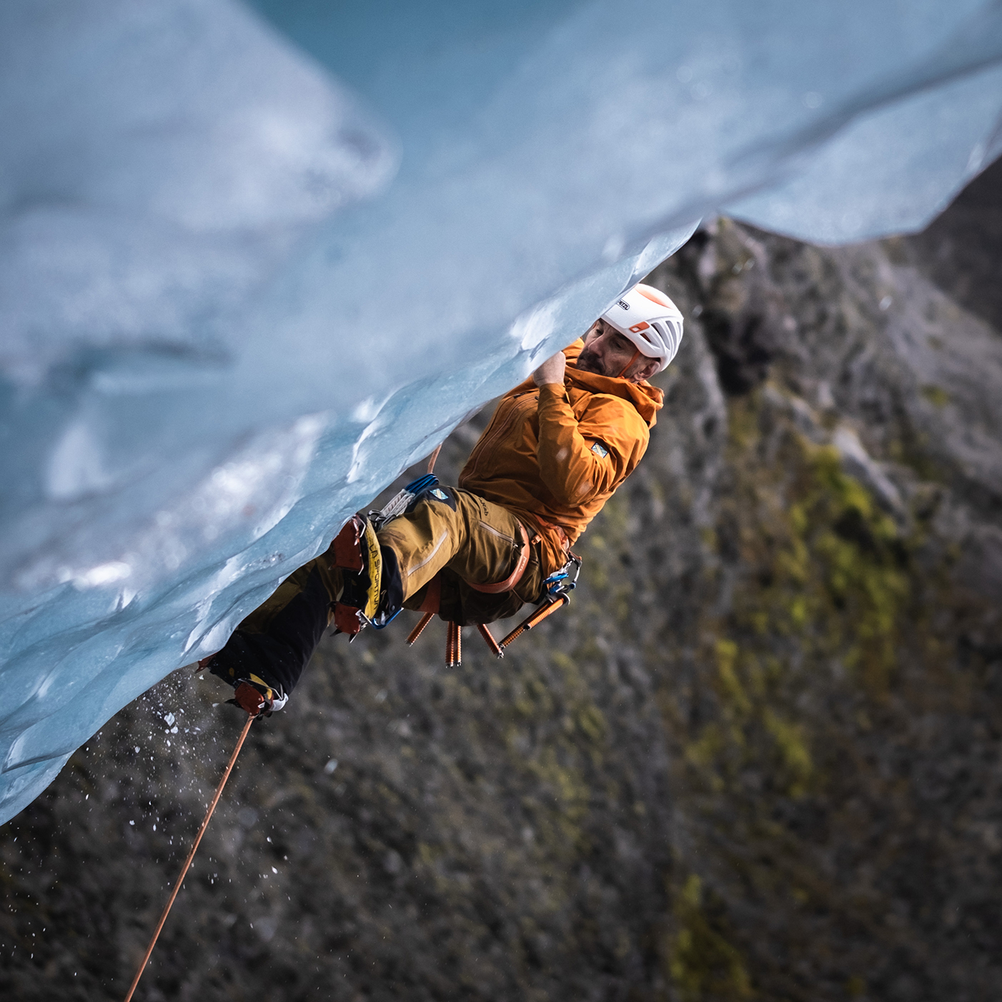 Ho iniziato davvero l’arrampicata su ghiaccio all’età di 20 anni. Meno di due anni dopo ero diventato completamente dipendente da questo elemento. Già all’epoca il suo carattere effimero mi attirava particolarmente. Il fatto che sia presente solo per poche brevi settimane all’anno mi motiva ancora di più. Le condizioni meteorologiche sono variabili: bisogna farsi trovare pronti nel giorno giusto, perché il giorno dopo il meteo potrebbe aver fatto scomparire il ghiaccio.