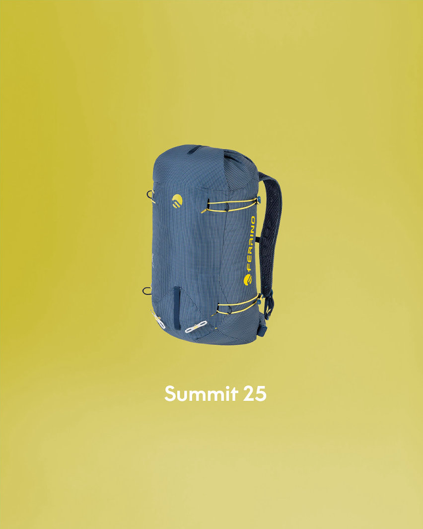 Completamente nuova la collezione di zaini SUMMIT che si caratterizza per le linee semplici e pulite, con un design leggero ed essenziale. Allo stesso tempo, gli zaini sono dotati di tutte le caratteristiche tecniche necessarie per soddisfare le esigenze degli alpinisti in tutte le stagioni. Ogni modello è pensato per garantire massima funzionalità e comfort, ideale per le avventure in montagna, è disponibile in tre pratici litraggi: 25, 32+5 e 48+5 litri.