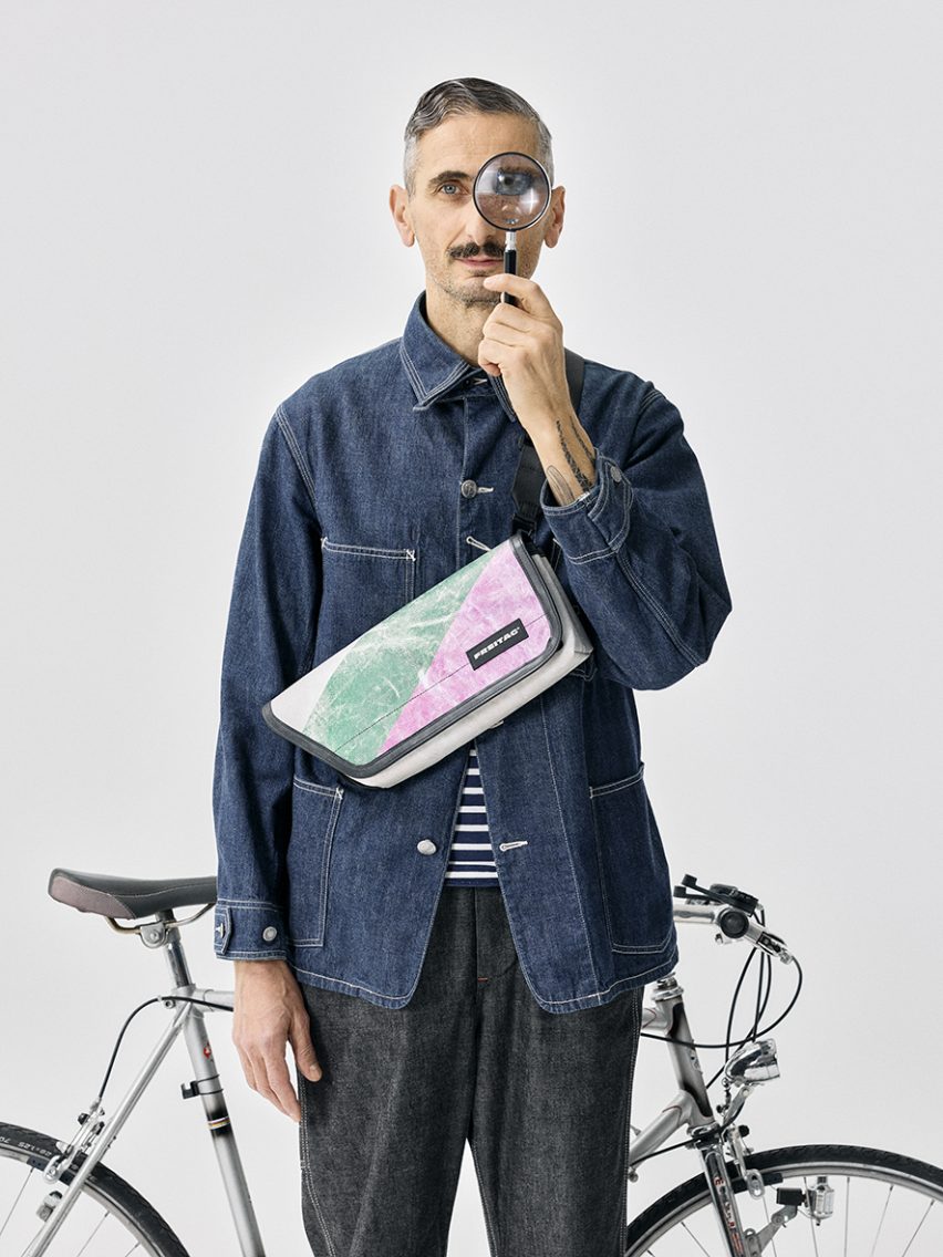 Le borse si trasformano rapidamente in pratiche crossbody per l’uso quotidiano. Grazie ai formati intermedi e al nuovo linguaggio formale, arricchiscono la gamma del brand. Ogni pezzo è unico, realizzato da teloni di camion riciclati, e racchiude i valori che FREITAG porta avanti da oltre trent’anni: passione per la bicicletta, individualità e upcycling.