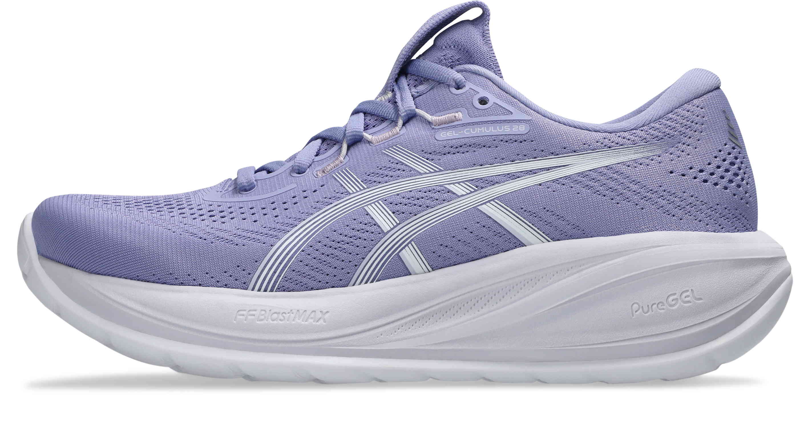 GEL‑CUMULUS 28 di ASICS introduce un aggiornamento mirato dell’intersuola con l’arrivo della schiuma FF BLAST™ MAX, più leggera e più morbida rispetto alla FF BLAST™ PLUS utilizzata sulla versione precedente. L’obiettivo è aumentare il comfort nelle corse quotidiane mantenendo un comportamento stabile e prevedibile. La sensazione sotto il piede risulta più piena e più morbida, con un ritorno elastico più evidente nelle fasi di spinta.