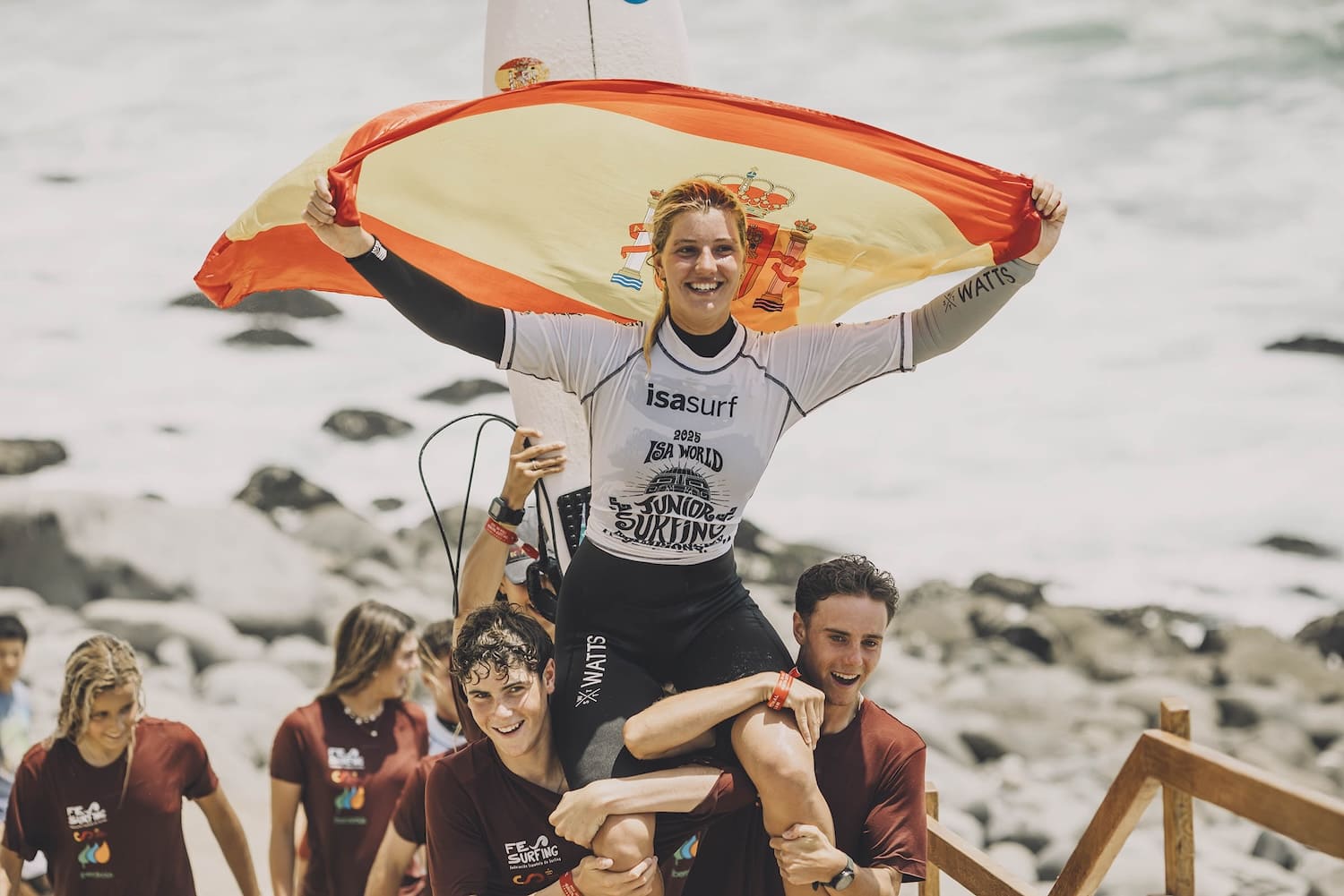 Spagna scrive una pagina storica del surf mondiale: Dylan Donegan diventa il primo atleta a vincere due ori in categorie diverse (U/16 e U/18 Boys), mentre Sol Borelli conquista il primo oro femminile per la nazione, confermando la crescita del movimento iberico.