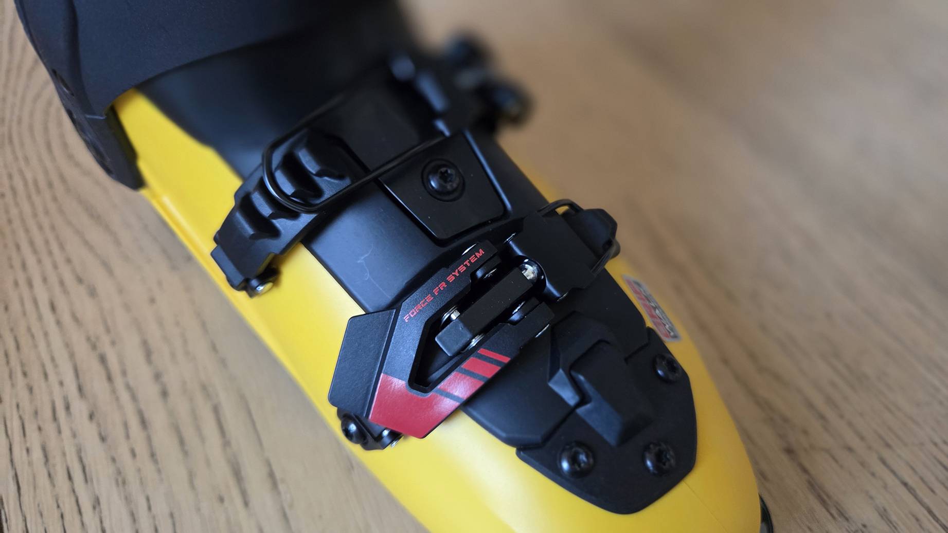 Quattro ganci FORCE POWER CLOSURE dicevamo, con regolazione millimetrica, strap tibiale FORCE Wrap System™ regolabile e linguetta di nuova generazione per trasmettere la tua forza direttamente alle lamine degli sci. (Sci che possono arrivare a 120 mm di larghezza centrale).