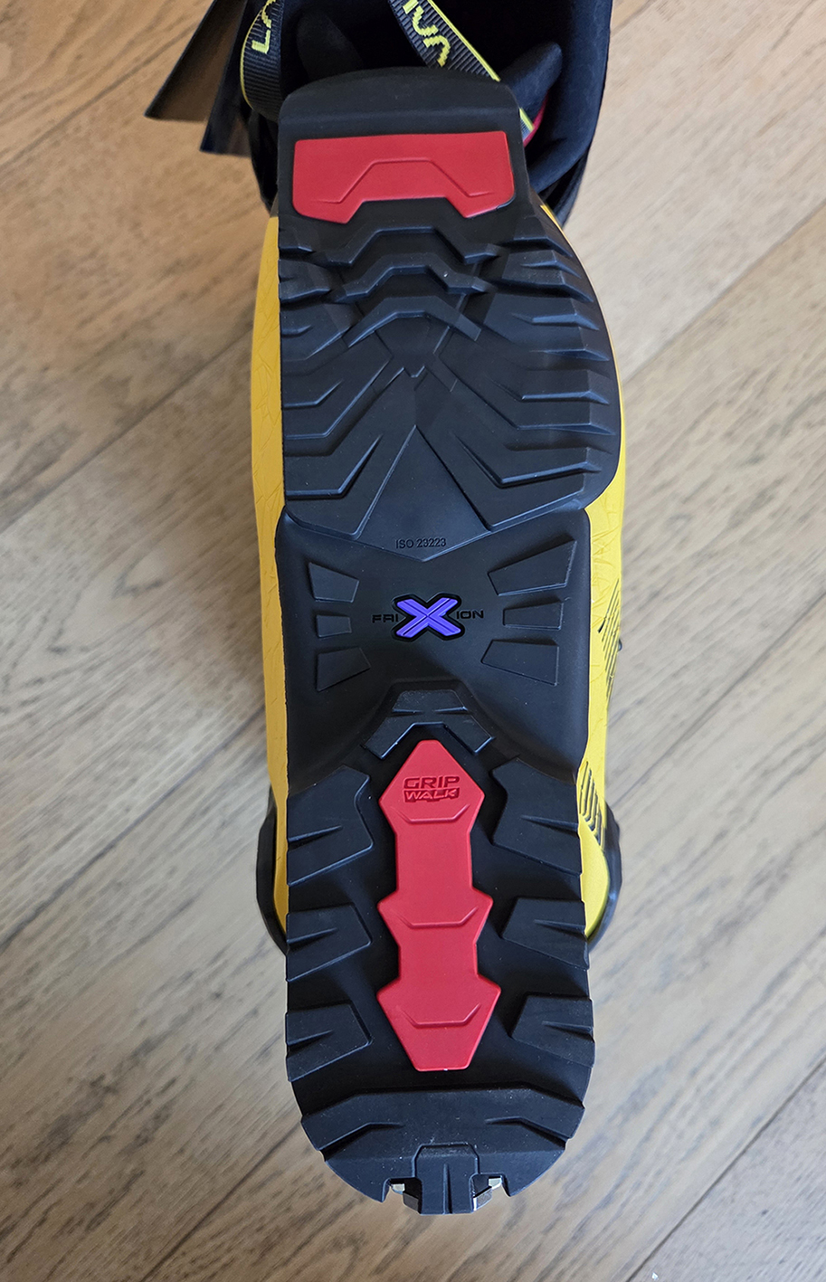 Il design della suola (Grip Walk) è compatibile con gli attacchi da sci alpino, e la mescola FriXion garantisce aderenza nei tratti in cui ci si devono caricare gli sci in spalla e camminare su roccia o neve dura.