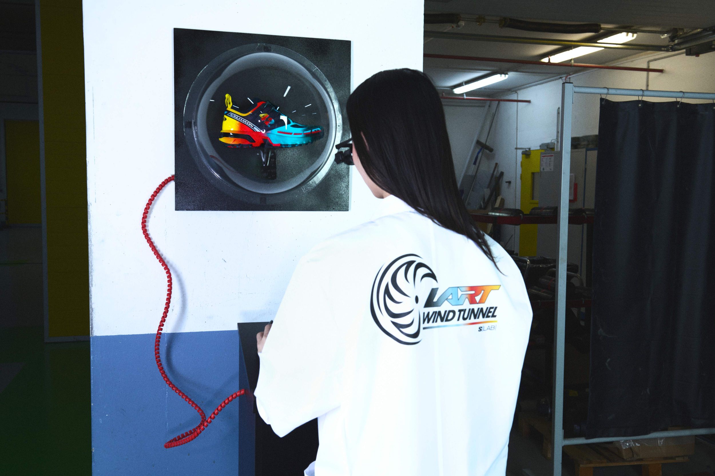 La campagna che accompagna il lancio è uno degli aspetti più interessanti del progetto. Ispirata al documentario sullo sviluppo della S/LAB Phantasm 3, mette in scena un team di scienziati visionari impegnati in una ricerca ossessiva della velocità. Il tono è volutamente cinematografico, quasi parodico, con test in galleria del vento che coinvolgono auto, atleti e persino una capra. È un modo per raccontare l’innovazione tecnica attraverso un immaginario che appartiene più al motorsport che al running, e che permette alla scarpa di diventare una “macchina da corsa” in senso narrativo prima ancora che funzionale. I flussi aerodinamici che emergono dai test diventano il codice visivo della capsule, influenzando grafiche, colori e gradienti.