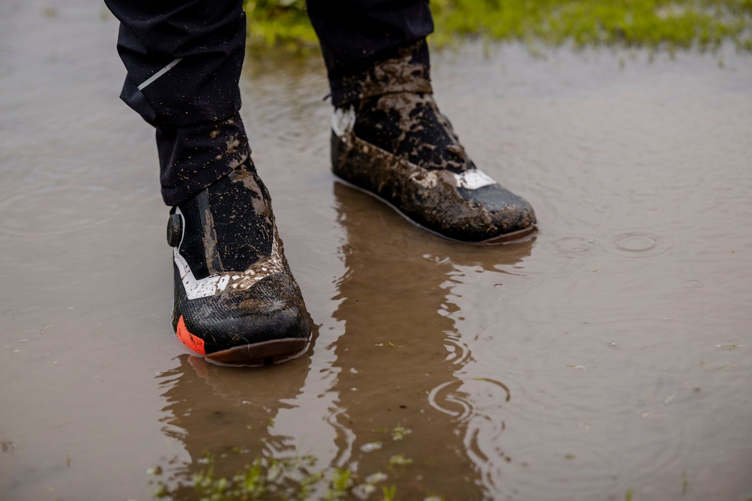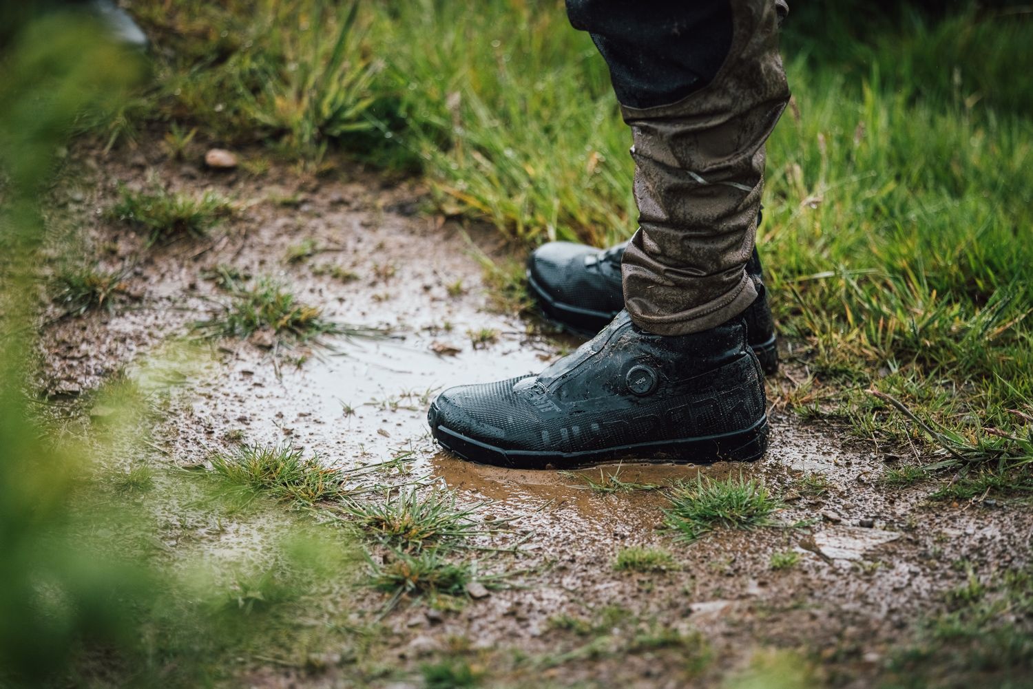 Oltre a giacche, pantaloni e tute integrali, anche le calzature impermeabili HydraDri sono state completamente aggiornate. Le nuove HydraDri ProFlat 7.0 Boa (nero totale) e HydraDri ProClip 8.0 Boa (con elementi a contrasto) offrono ora un livello di impermeabilità e traspirabilità di 20.000 mm / 20.000 g/m², il doppio rispetto ai modelli precedenti. Entrambe integrano il sistema di microregolazione Boa Li2, che consente di regolare la tensione esternamente senza aprire la chiusura impermeabile.
