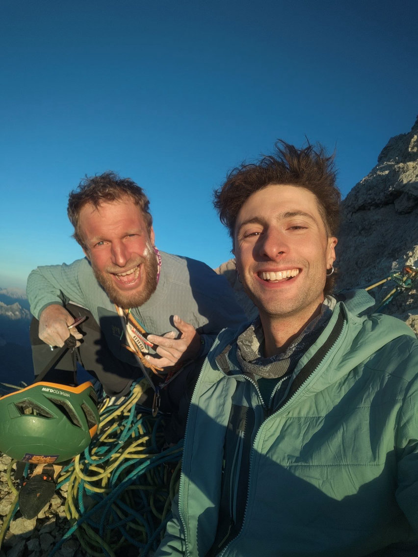 “È un progetto che ci ha tenuti impegnati per anni, tra meteo, infortuni e tentativi rimandati. Vederlo finalmente completo fa un certo effetto. La linea è alpinistica e indipendente, con solo qualche spit alle soste e pochissimi di progressione: l’essenza è tutta nell’arrampicata. Sono sedici tiri sopra l’VIII, con punte fino al IX+, su una roccia stupenda, continua, mai banale. Forse una delle vie più impegnative della parete, ma anche una delle più belle che abbia mai salito” il commento di Mirco Grasso.