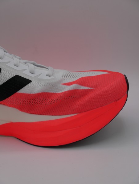 Il design è moderno e aggressivo, con linee aerodinamiche e una tomaia minimalista. La scarpa comunica velocità già a prima vista, con colorazioni vivaci e dettagli tecnici che ne esaltano la natura da gara. La silhouette è snella, pensata per ridurre la resistenza e migliorare la penetrazione dell’aria.