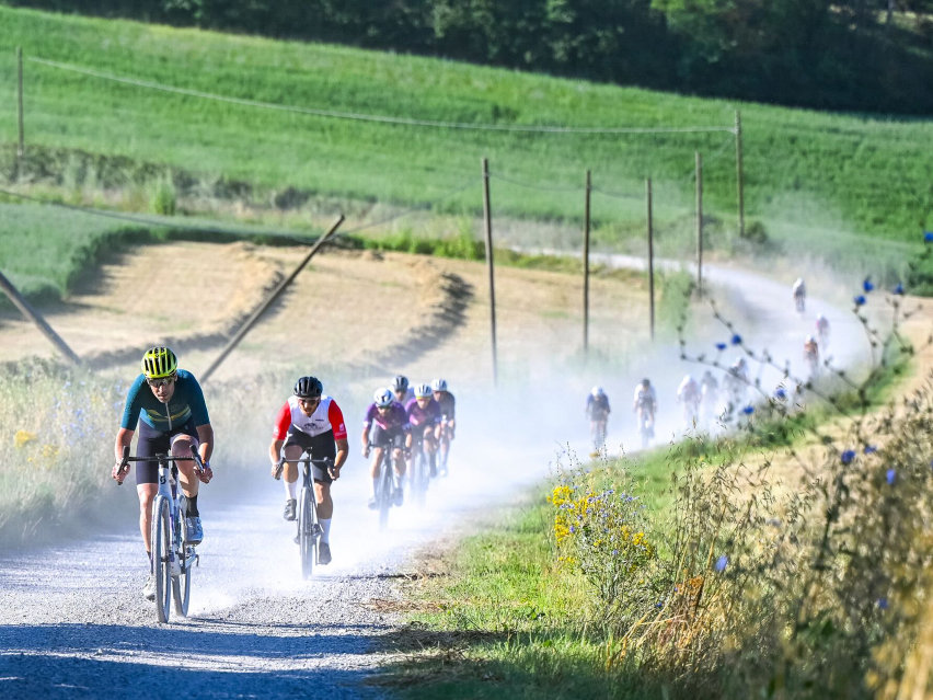 290 km e circa 5.500 metri di dislivello, su alcune delle strade bianche più impegnative della regione.
