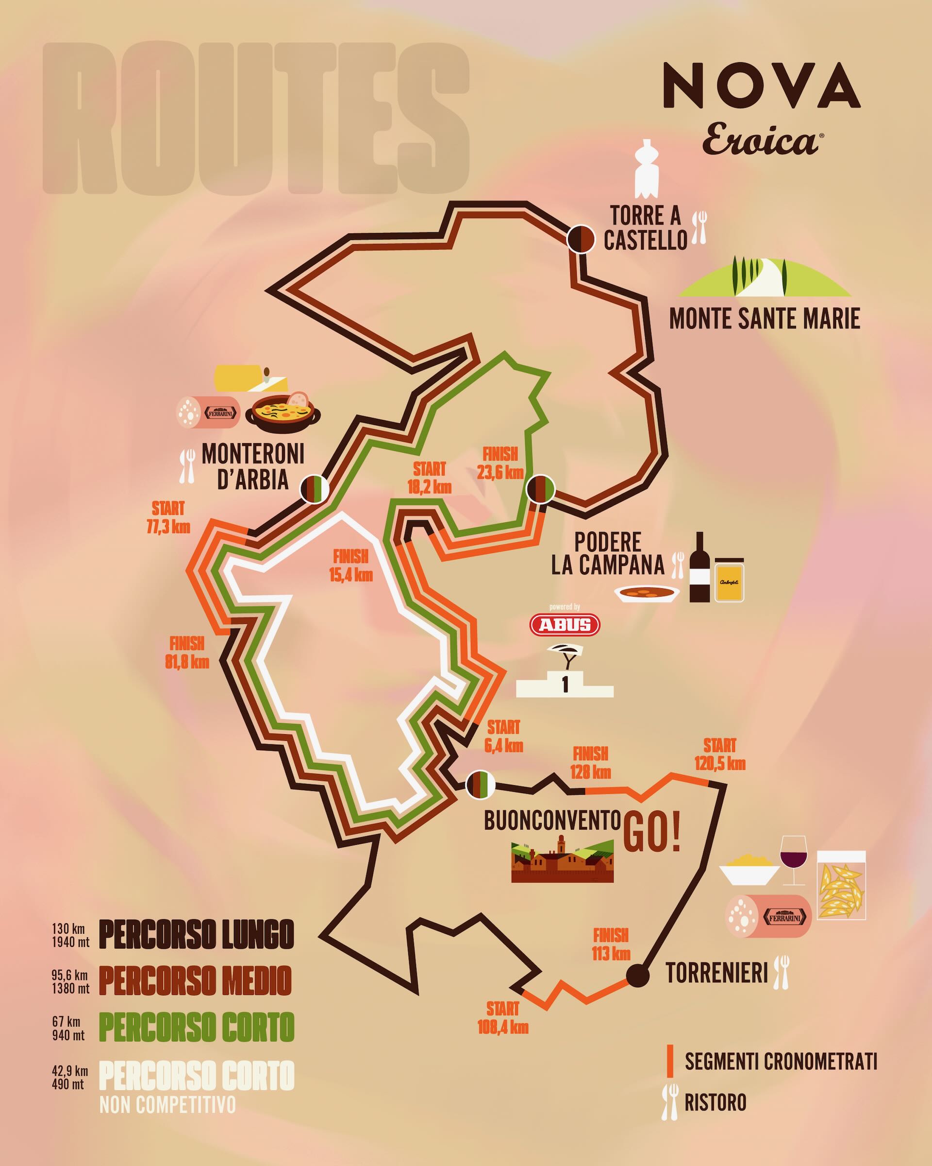 I percorsi di NOVA Eroica attraversano 17 comuni, seguendo le tracce permanenti de L’Eroica e di Eroica Montalcino. Un lavoro che, negli anni, ha contribuito a trasformare questa parte di Toscana in una delle destinazioni più apprezzate dal cicloturismo internazionale.
