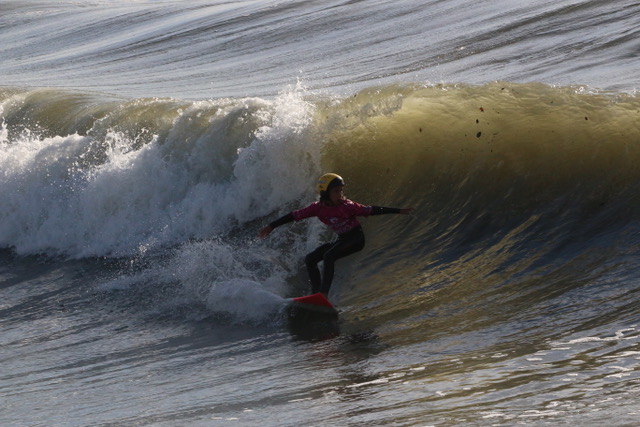 Dopo una serie di mareggiate segnate dal maltempo, mercoledì 26 novembre è finalmente arrivata quella giusta. Gli organizzatori non si sono lasciati sfuggire l’occasione per dare il via alla gara dedicata agli Junior (8-15 anni) e ai Longboarders. Grazie alla “local knowledge” di Alessandro Dini e alla “meteo knowledge” di Michele Cicoria, la competizione si è svolta in condizioni pressoché perfette: zero vento, sole e onde con periodo di 8 secondi, di grandezza e forma ideali sia per i longboarders che per i giovani atleti.