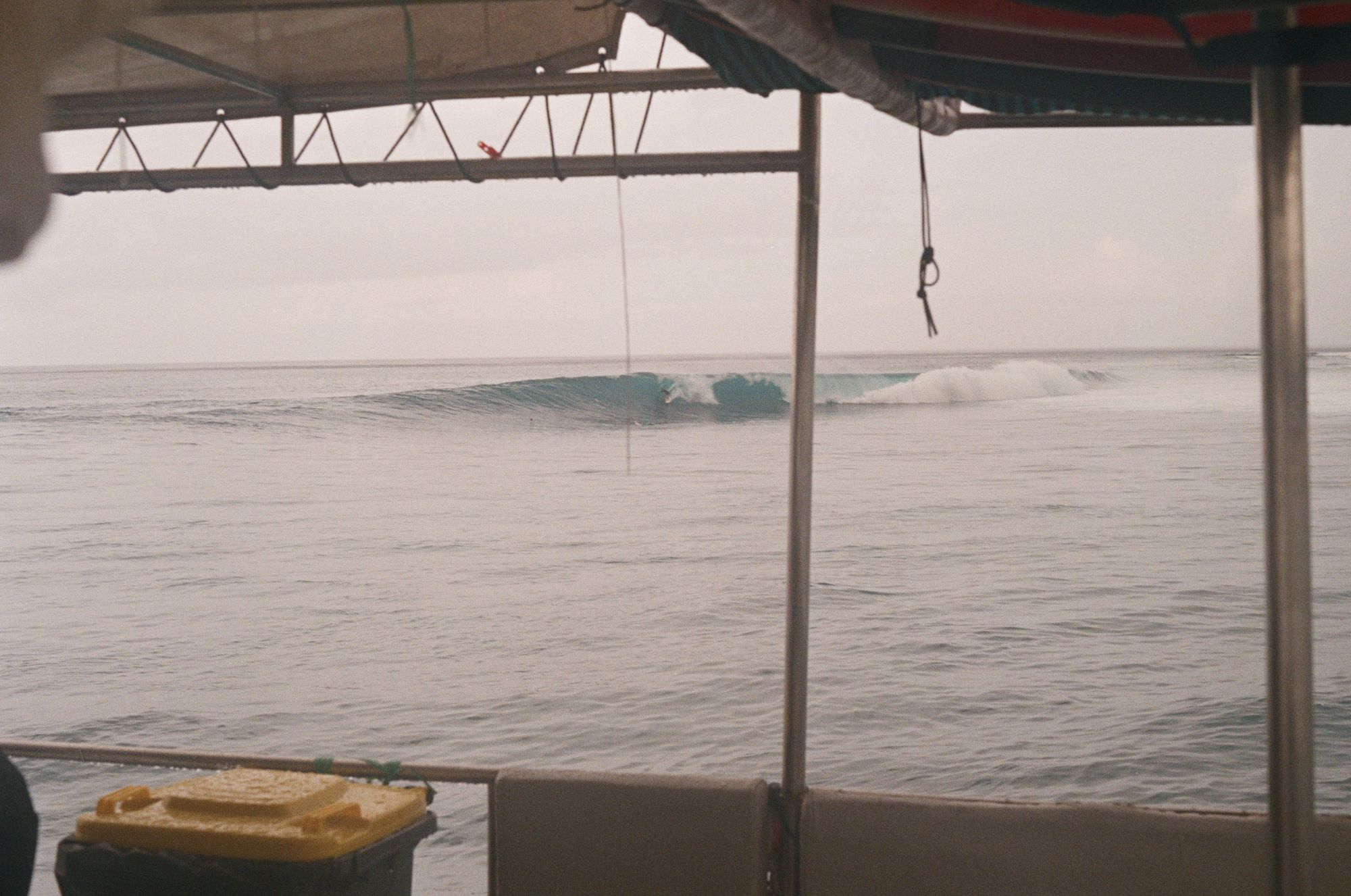 HT è un’onda perfetta, rompe come le onde che si disegnano nei quaderni quando si è ragazzini. Ma quando la swell è sopra i 6ft, la gente del resort sulla spiaggia di fronte rema fuori, e i gruppi delle altre imbarcazioni si svegliano, bhe, la situazione diventa rapidamente intensa e competitiva. Pure Fernando e Alejandro faticavano a prendere un’onda degna di nota, per lo più sempre troppo profondi nel tubo o troppo davanti.