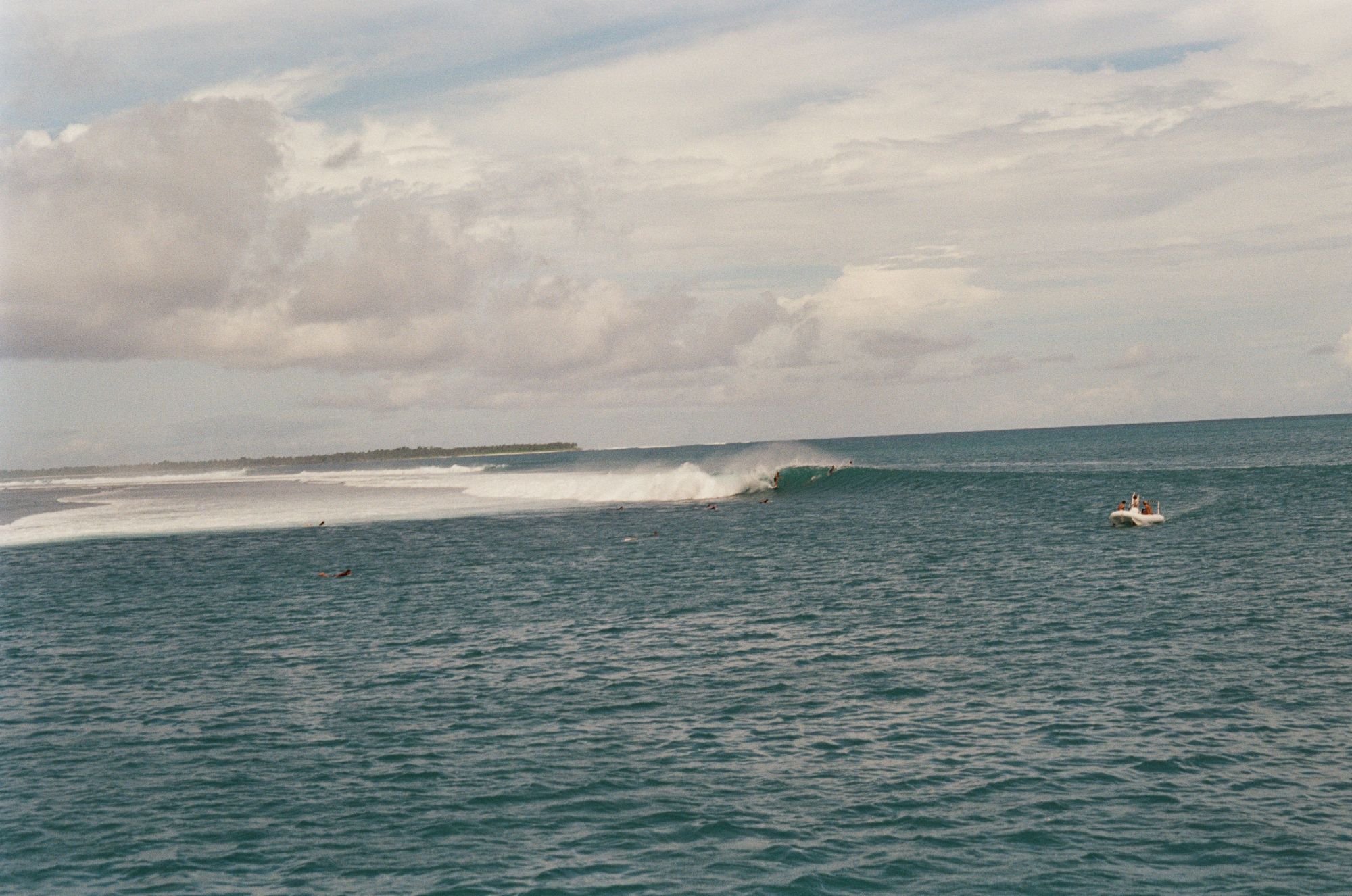 Solamente un giorno le onde erano talmente piccole che nessuno del nostro gruppo pensò valesse la pena rimanere seduti in mezzo a un gruppo di persone in acqua per surfare un’onda di manco mezzo metro. Ci prendemmo la giornata per rilassarci e goderci il fatto di essere in mezzo al nulla tra isole tropicali.