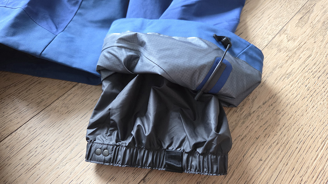 Fondamentale però è stata l’adozione del tessuto 3 strati con la nuovissima membrana Gore-Tex ePE 100% Nylon Riciclato, con rovescio Rip-Stop e trattamento DWR senza PFAS aggiunti intenzionalmente, e fodera 89% Poliestere Riciclato e 11% Elastan.