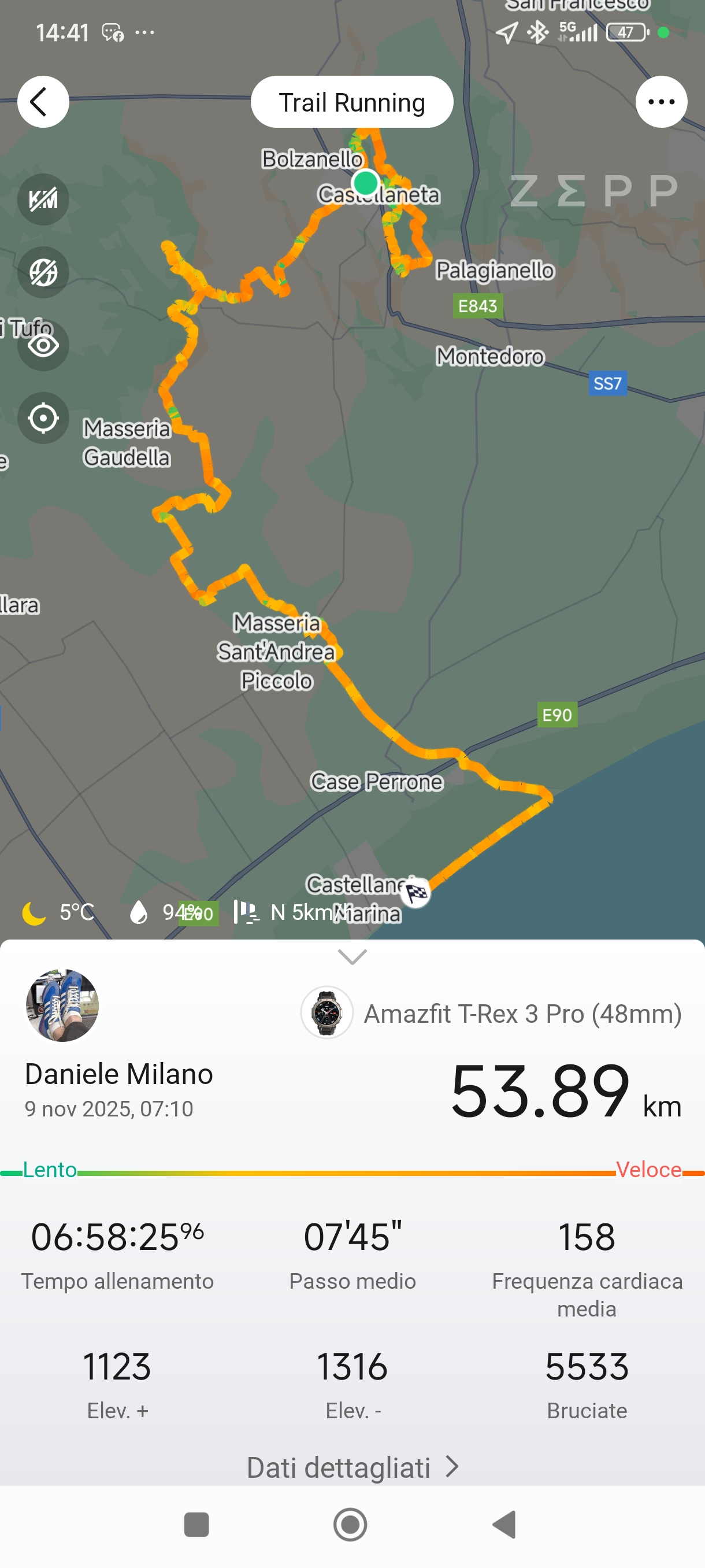 Gli ultimi chilometri sono un romanzo. Quattro chilometri e mezzo sulla spiaggia, in contropendenza, sotto un diluvio che rende tutto più intenso. Taglio il traguardo in 6h58, un sub-7 che mi riempie di orgoglio. Non ho solo finito una gara: ho vissuto un’esperienza totale.