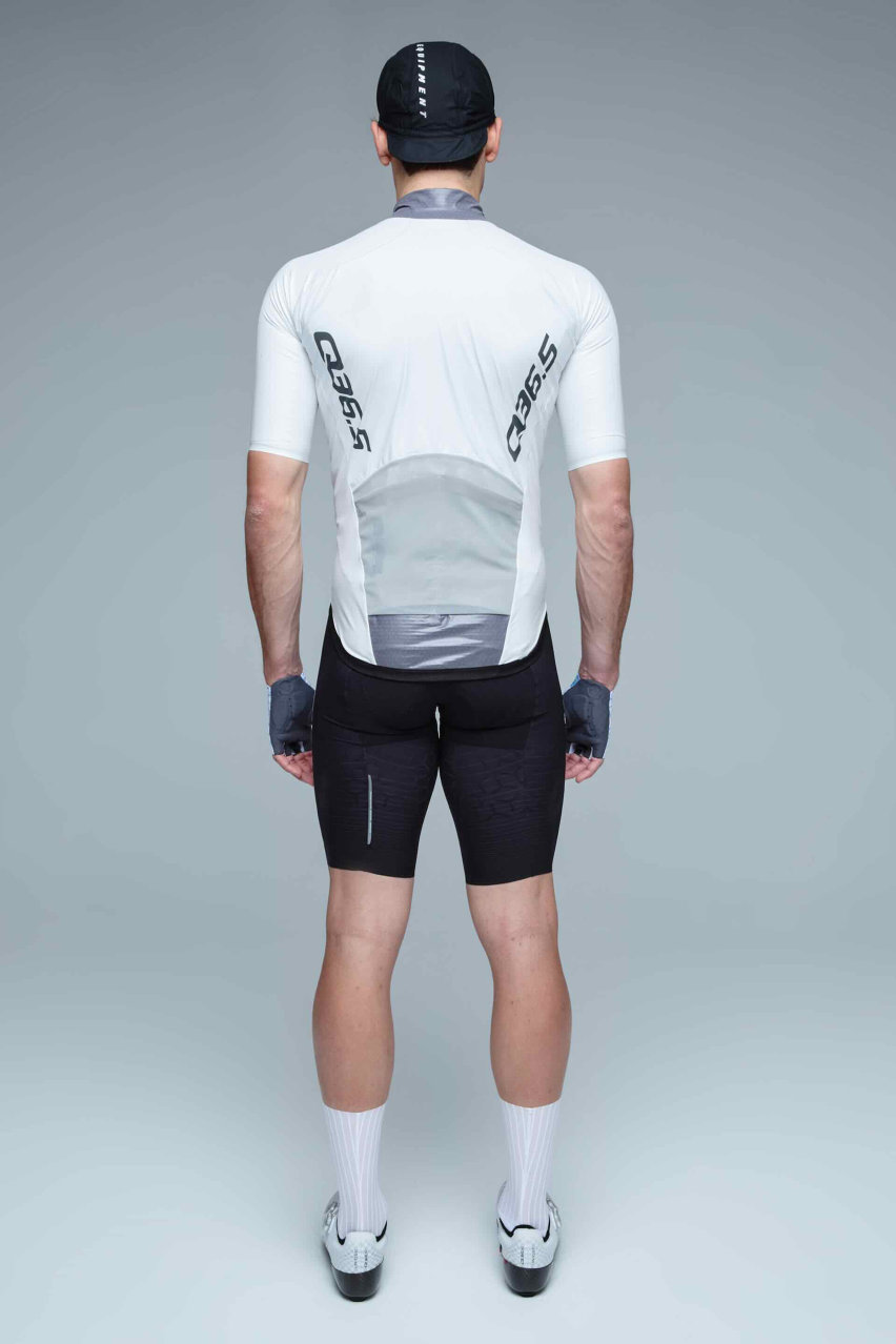 Il design è compatto e funzionale: colletto rialzato, vestibilità preformata race fit e una struttura che limita al minimo l’utilizzo di materiale, per massimizzare aerodinamica e libertà di movimento.