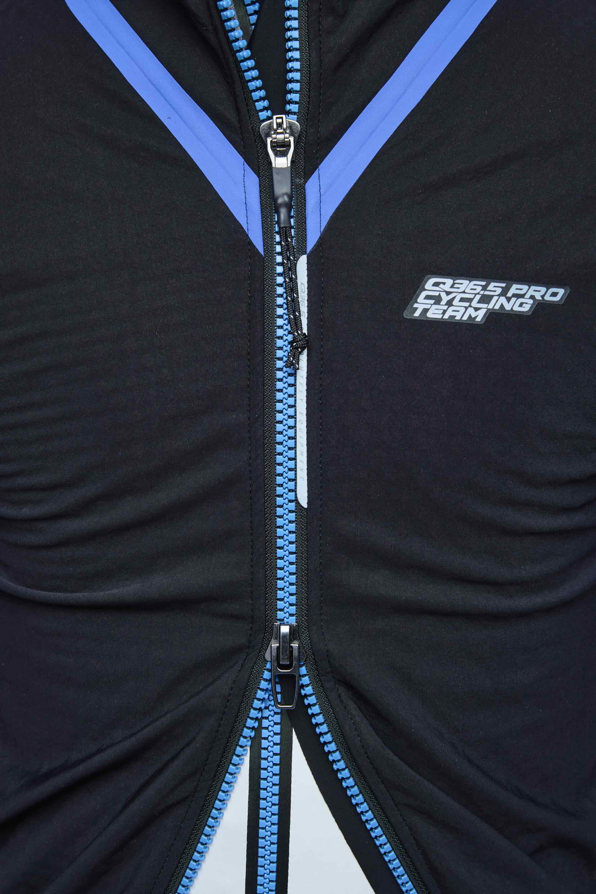 Il design è compatto e funzionale: colletto rialzato, vestibilità preformata race fit e una struttura che limita al minimo l’utilizzo di materiale, per massimizzare aerodinamica e libertà di movimento.