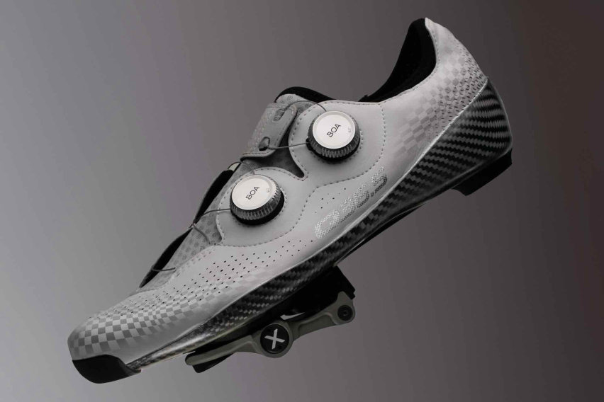 Le scarpe sono le Unique Pro 4.0 – recente entrata nel catalogo Q36.5 -, un prodotto interamente realizzato in Italia, riconoscibile per la distanza molto contenuta fra piede e suola (4,4 mm), la cura nella termoregolazione e la suola in fibra di carbonio realizzata a mano, fra le più sottili disponibili.
