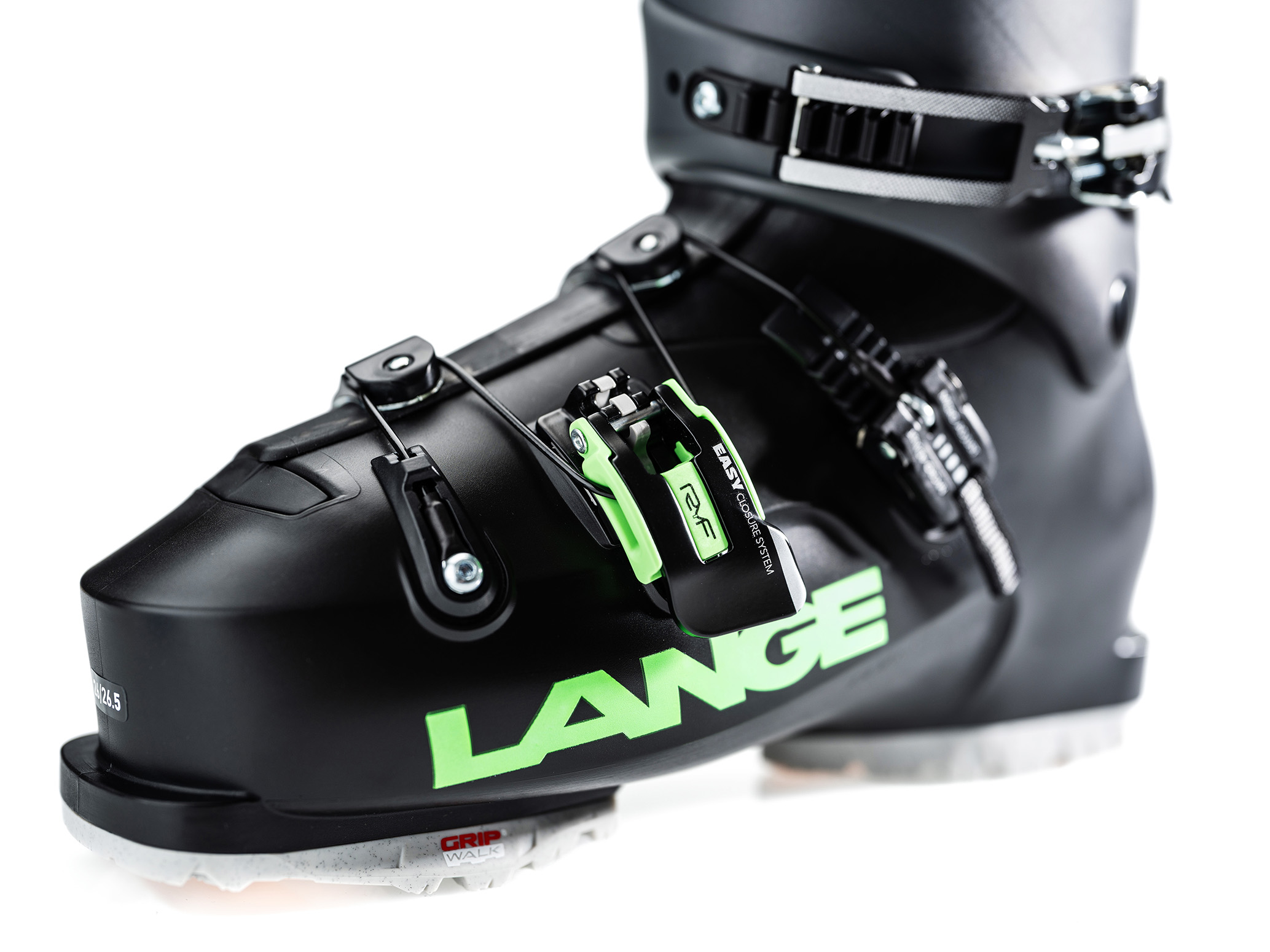 Sul modello Lange CONCEPT (stagione 2025/26), il sistema RYF® Easy permette un controllo a tre punti con un solo gancio sullo scafo, garantendo costanza di calzata e facilità d’uso.