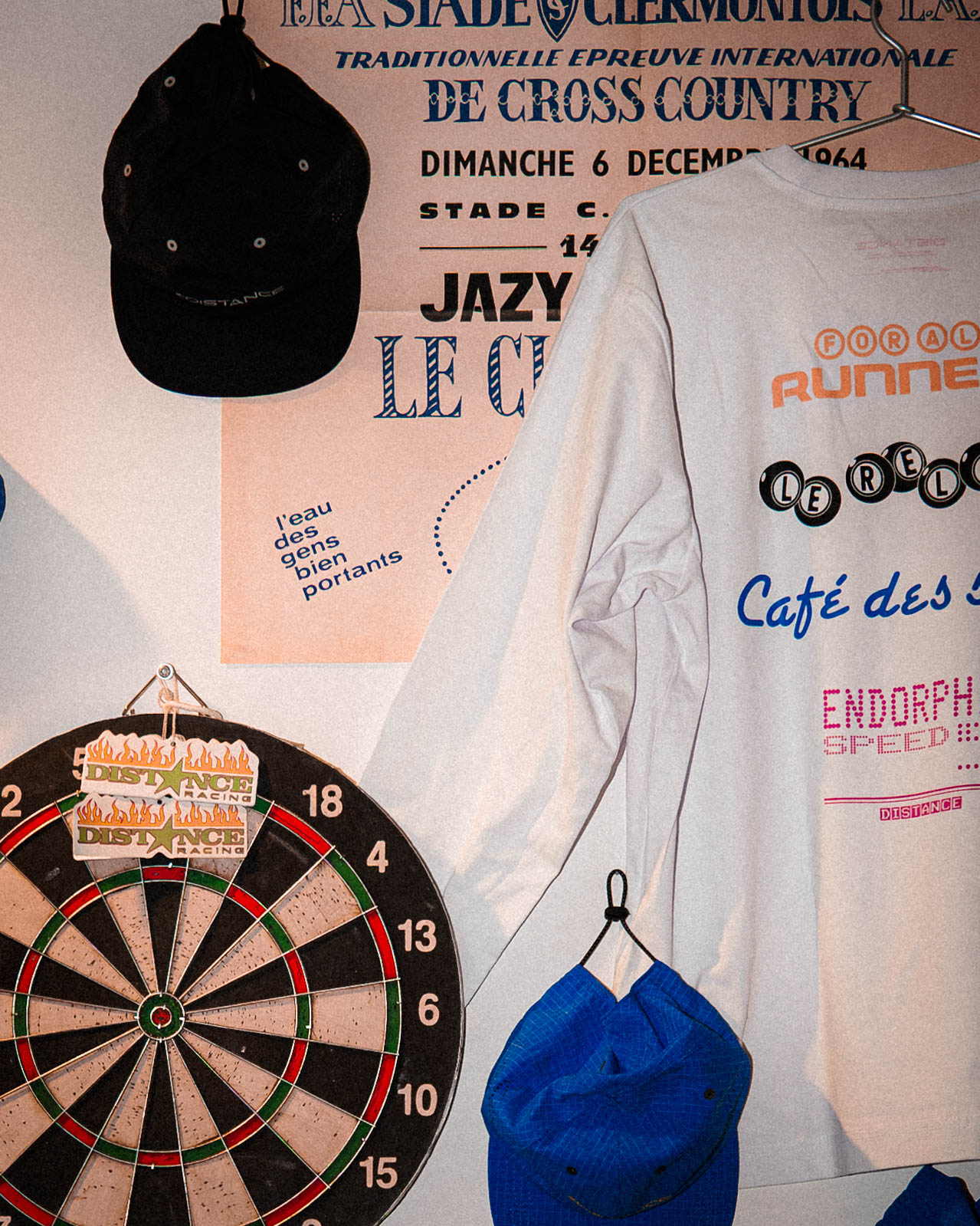 La confezione co-branded, la sacca fluo, i dettagli grafici: tutto parla il linguaggio di Distance. Un linguaggio che non separa il gesto atletico dall’espressione personale. Come dice Guillaume Pontier, co-fondatore del brand: