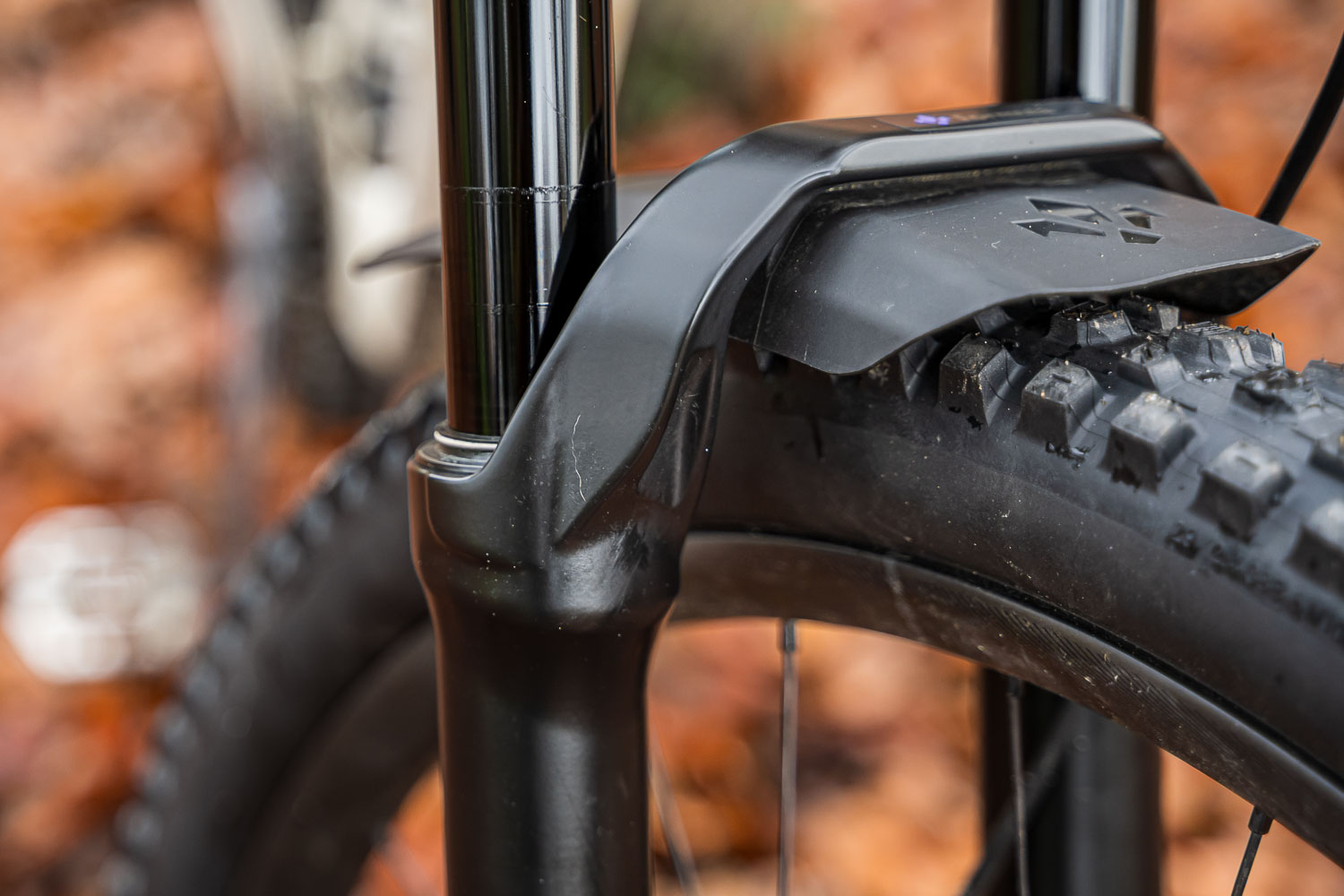Altre specifiche mostrano la compatibilità solo con ruote 29er, il supporto freno PM da 180 mm, e il parafango integrato. Oltre all’ingegnoso perno da 15 mm con sgancio rapido, chiamato Integrated Locking System (ILS): la leva funge da chiave a brugola da 5 mm e può essere rimossa, se si desidera un look più snello.