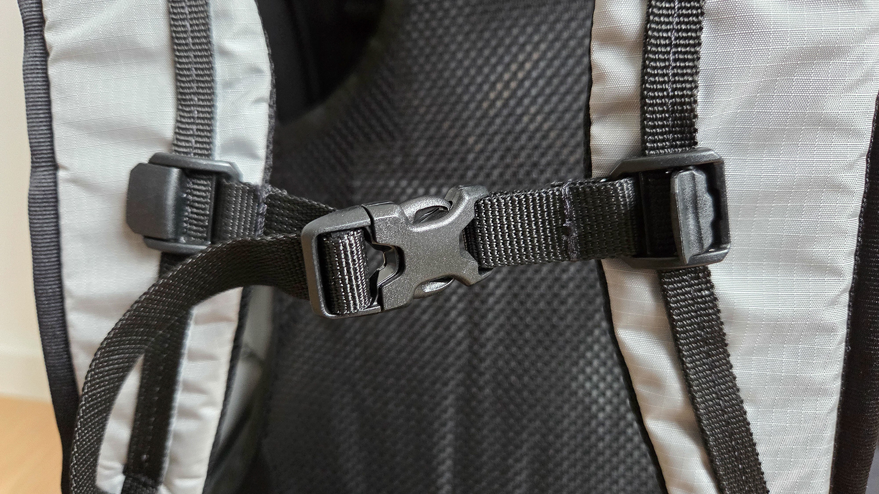 Parlavamo di comfort, ebbene ad esso ci pensa lo schienale con telaio metallico ricurvo che tende il mesh traspirante a contatto con la schiena, mentre gli spallacci (in schiuma a doppia densità), regolabili in lunghezza e profondità possono essere regolati, in base alla propria altezza, agendo su semplici e pratiche clip.