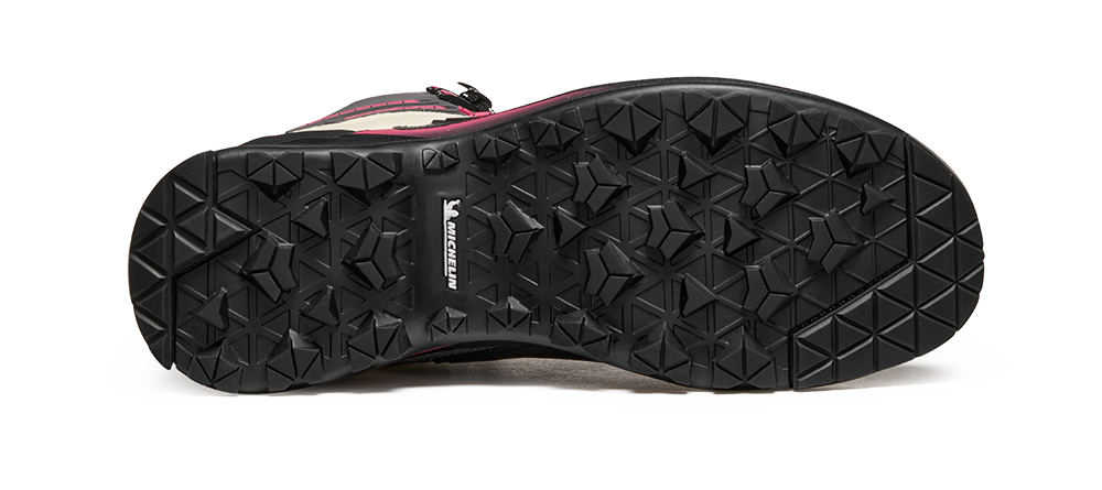 Il cuore del progetto è la suola Michelin, sviluppata per un utilizzo approach e hiking tecnico. La struttura dual-compound ottimizza il bilanciamento tra aderenza e durabilità, migliorando la trazione su superfici rocciose e irregolari e aumentando la sicurezza in fase di appoggio. L’integrazione della tecnologia fiberlite contribuisce alla riduzione del peso complessivo della calzatura, mantenendo al tempo stesso flessibilità, comfort dinamico e trazione affidabile anche in condizioni di utilizzo prolungato.