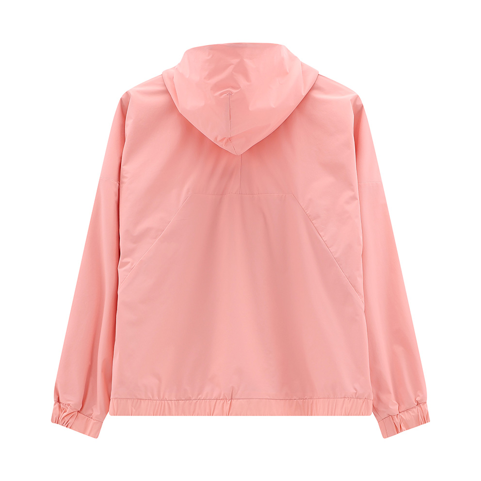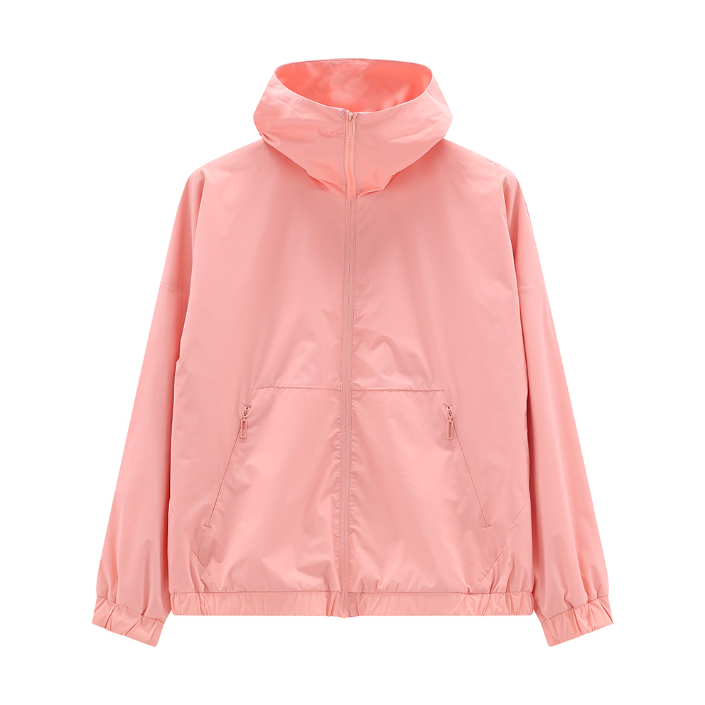 Giacca con cappuccio in tessuto tecnico 4-way-stretch, caratterizzata da una vestibilità loose con spalle scese. Polsi e fondo elasticizzati garantiscono comfort e libertà di movimento, mentre la fodera interna in interlock assicura morbidezza durante l’attività.