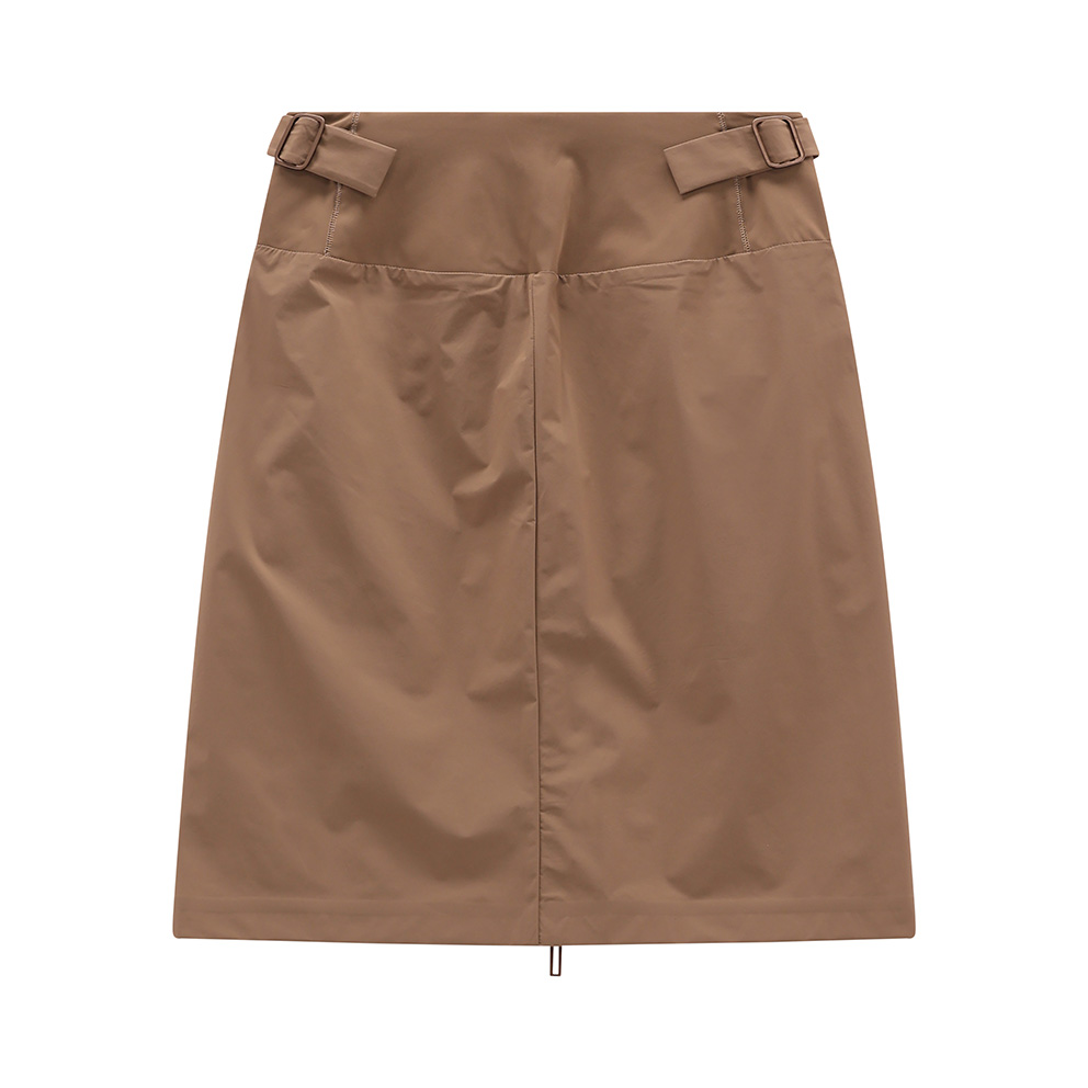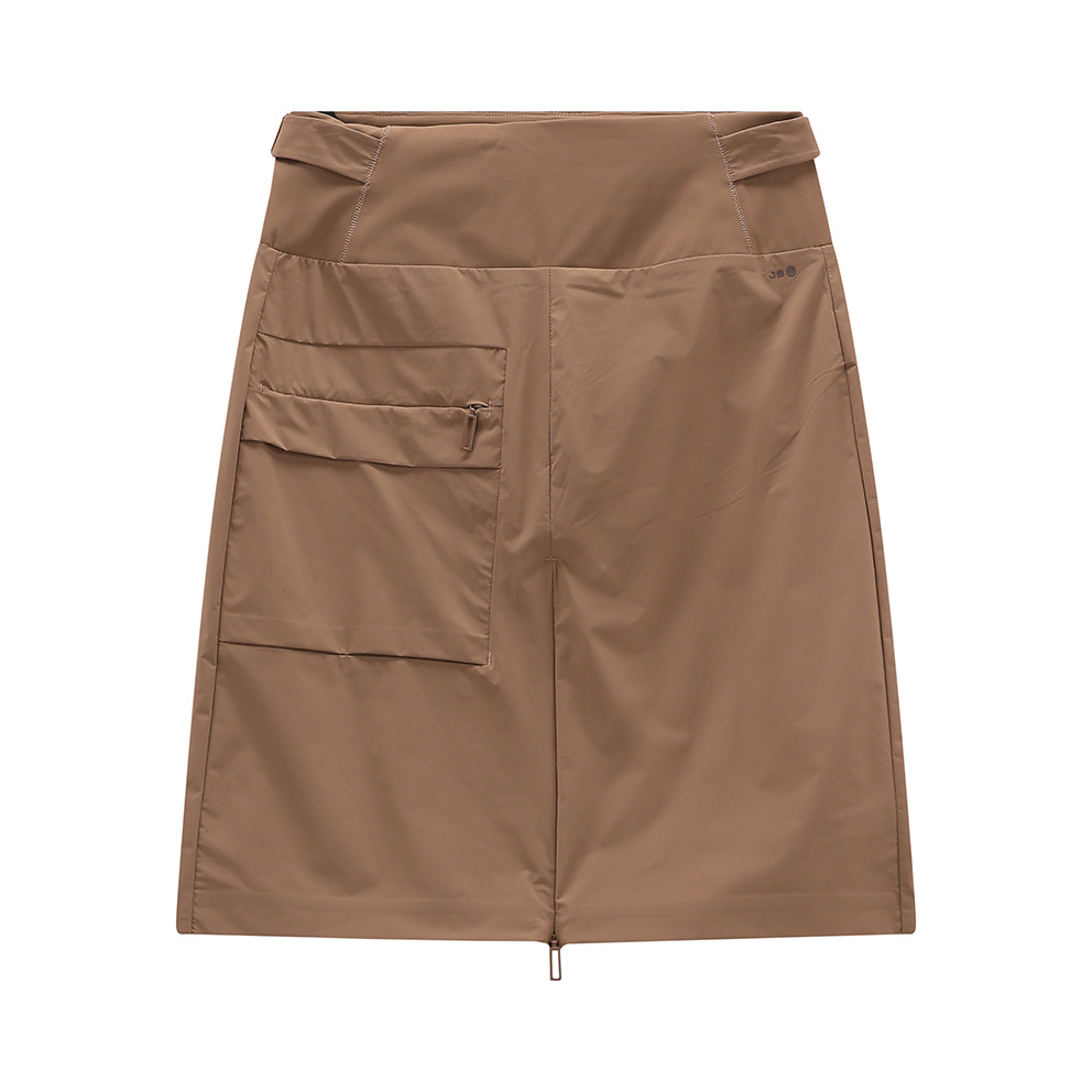 Gonna pull-on in tessuto tecnico 4-way-stretch con trattamento water-repellent. La vita alta regolabile, la tasca cargo e lo spacco frontale uniscono praticità e design minimal.