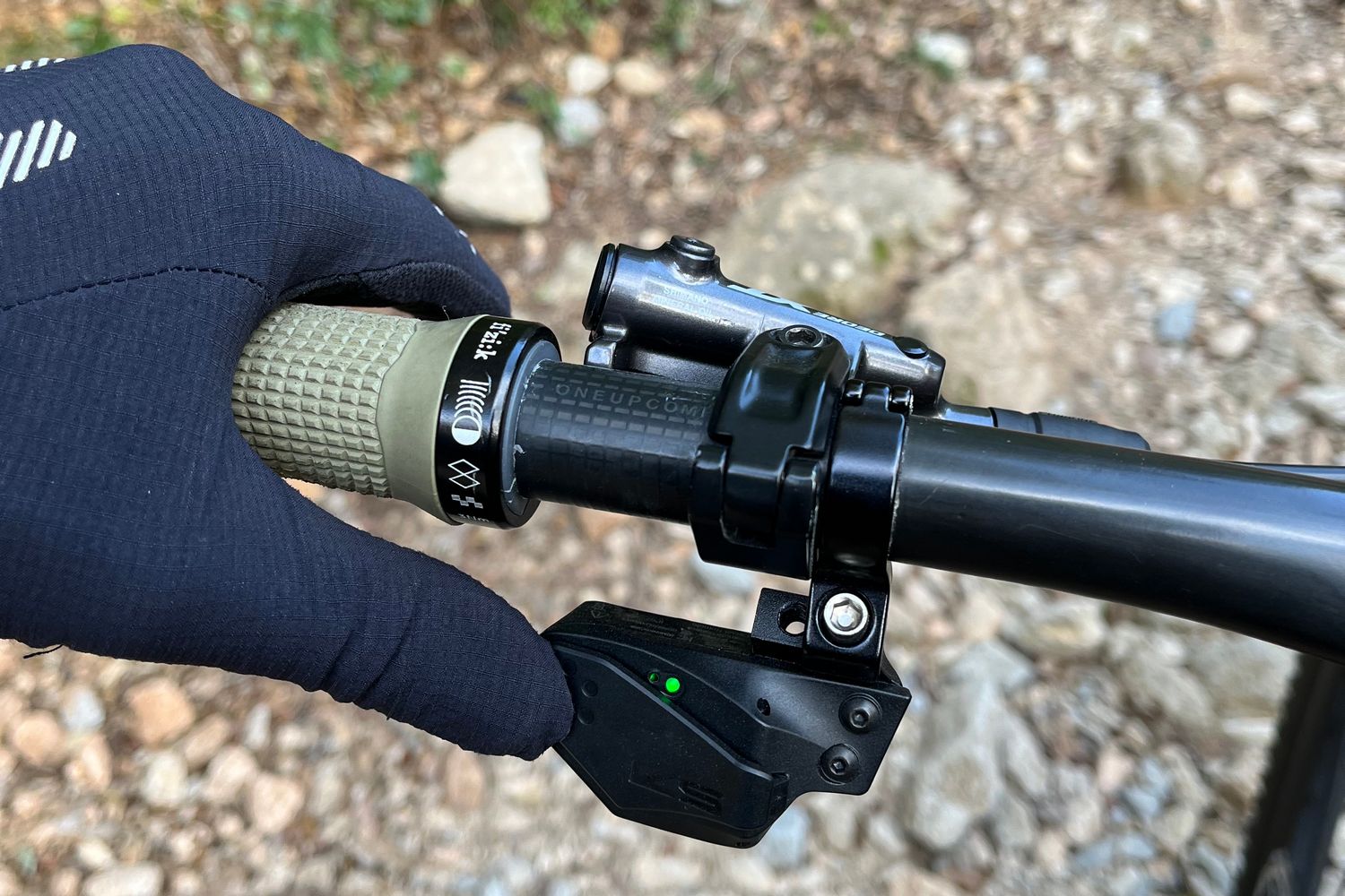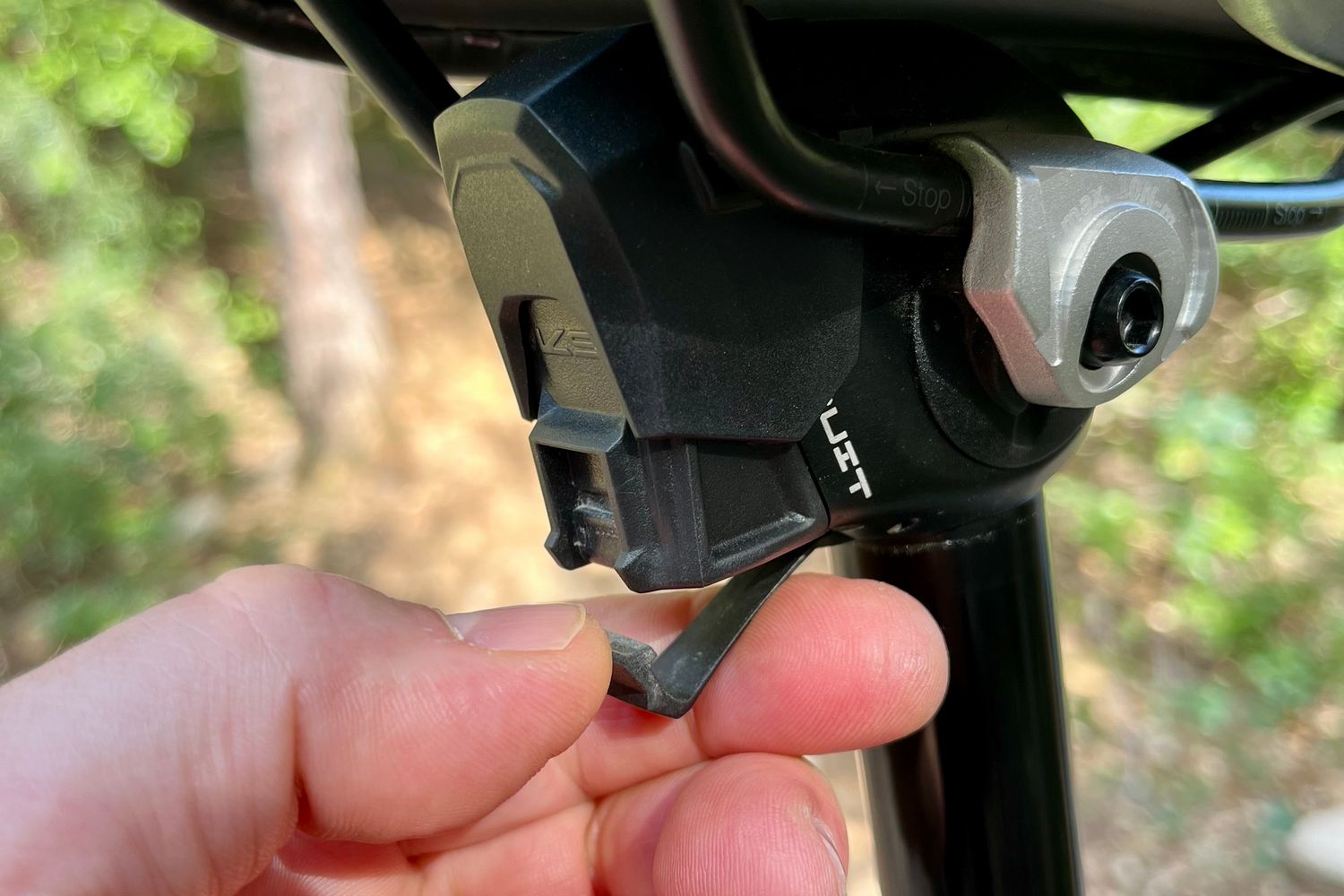 Il comando al manubrio è molto sensibile e reattivo. Basta una pressione leggera del pollice per azionare il dropper, rendendo l’utilizzo naturale e immediato, anche in situazioni tecniche o di guida dinamica.