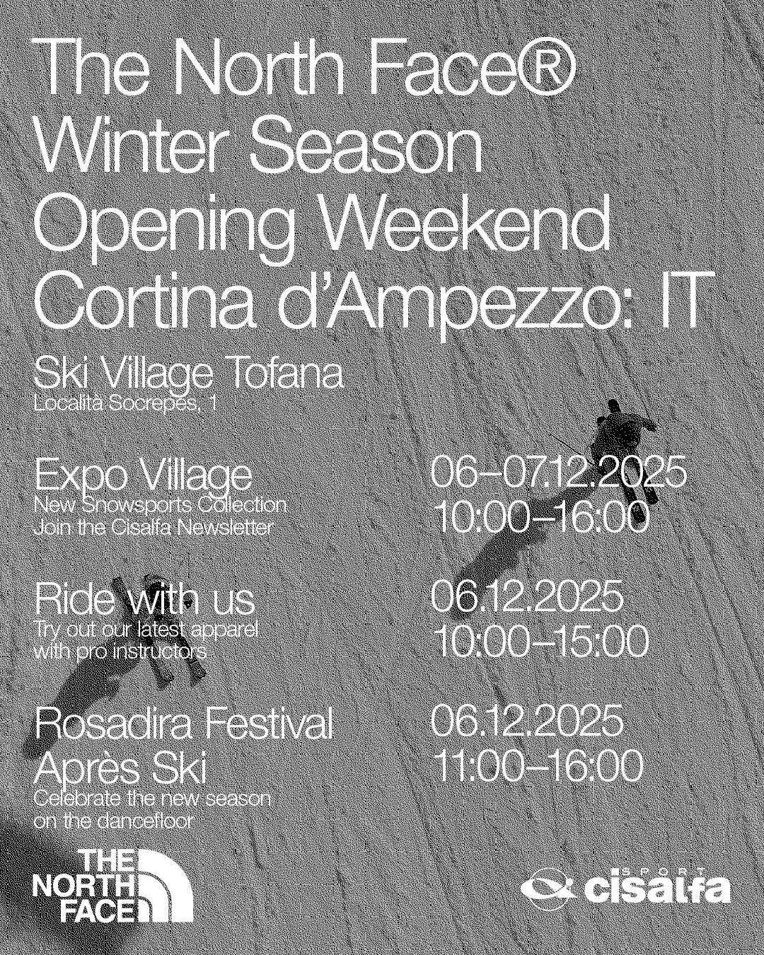 In occasione del Cortina Fashion Weekend 2025, dal 5 all’8 dicembre, The North Face, insieme allo storico partner Cisalfa, introduce in quota un modo completamente nuovo di vivere lo snowsport. Nasce così “New Perspective(s)”, un format che unisce test di prodotto, musica, esperienze outdoor e resort life per celebrare il lancio della nuova collezione Snow Sports.
