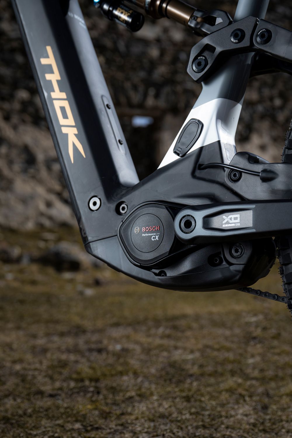 Questa edizione limitata si distingue per una selezione di componenti ai vertici della categoria, senza compromessi, e per una spettacolare livrea Gold: ogni dettaglio è stato progettato, scelto e testato per offrire il massimo in termini di reattività, precisione e controllo, consolidando il posizionamento di Thok nel segmento delle eMTB ad alte prestazioni.