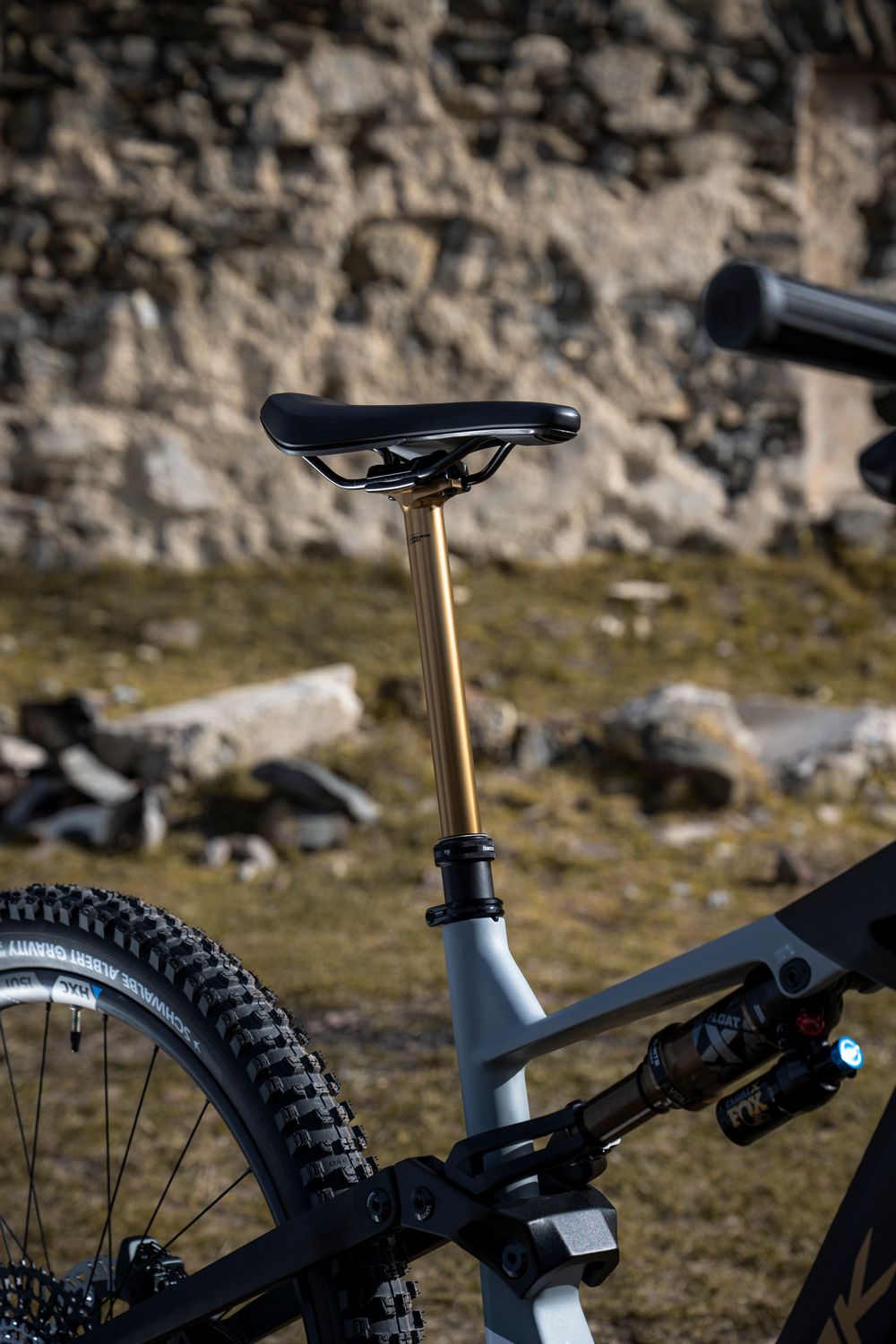 Le ruote DT-Swiss HXC1501 Carbon da 29” con cerchi da 30 mm, abbinate ai pneumatici radiali Schwalbe Albert Gravity Pro, completano un allestimento pensato per offrire rigidità, scorrevolezza e grip in ogni condizione. Il manubrio Renthal Fatbar Carbon e il reggisella Fox Transfer Factory aggiungono ulteriore affidabilità e precisione.