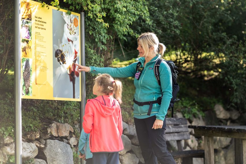A Campo di Trens, il “sentiero delle api” è un facile itinerario di circa 2 km adatto a tutti e percorribile in un’ora circa: lungo il percorso, pannelli informativi accompagnano gli escursionisti alla scoperta del mondo delle api. I giochi e le stazioni interattive sono pensati per trasmettere informazioni in modo facile e intuitivo per i bambini: un gioco di memoria, un’altalena e l’“abbraccio con l’ape” rendono il cammino dinamico e partecipato. I più piccoli –anche sel’itinerario è capace di coinvolgere tutta la famiglia –avranno così modo di scoprire l’etologia di questi insetti, i segreti dell’apicoltura eil ruolo fondamentale delle api come impollinatori indispensabili per l’ecosistema.